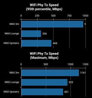 This means that the antenna strength is very good, and you could cover 500-600m2 with three satellites using Wi-Fi backhaul and considerably more with Ethernet backhaul.