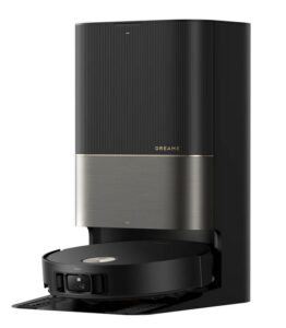 Dreame has perhaps the smallest cleaning station footprint (apart from the superb Eufy S1 Pro slim tower) and the most visually appealing looks for a device that occupies a public place in your home. My review unit is black, but you may be able to order the very clean-looking white variant.