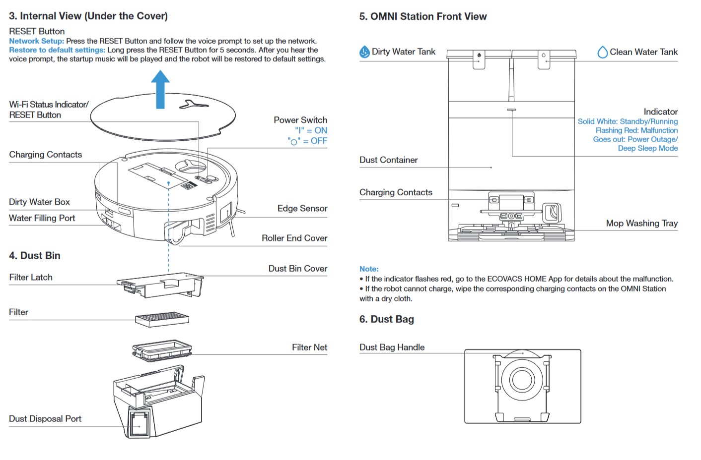 - Built-in 220ml dustbin, 110ml clean water tank and 95ml dirty water container (emptied to the OMNI station)
