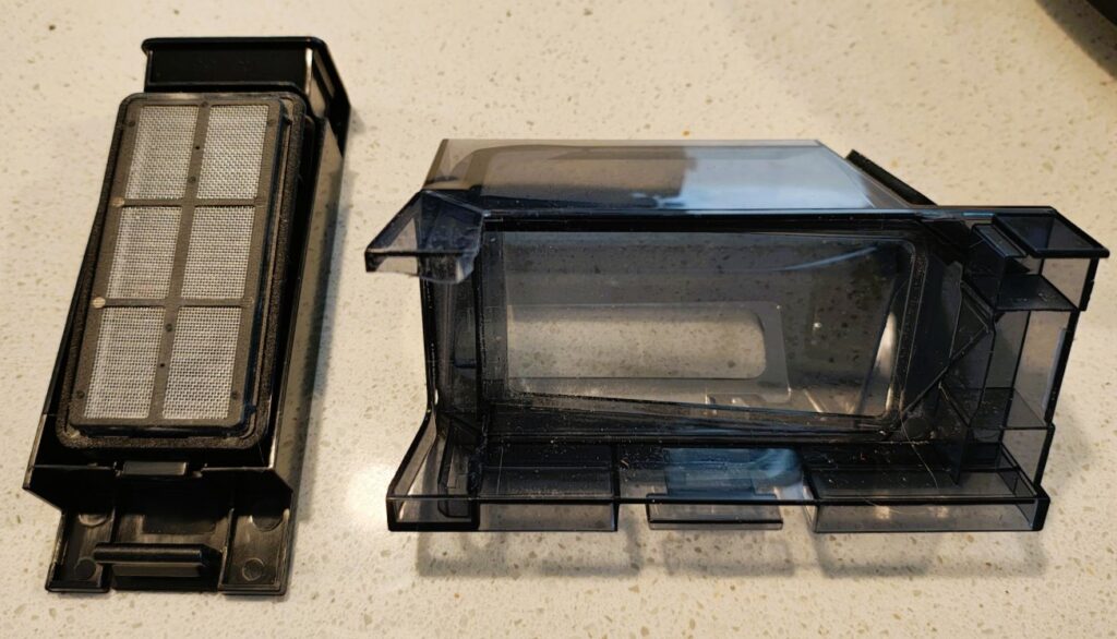 If you don’t know, robot vacuum/mops typically have a static/vibrating platen or dual rotating mop pads. To be clear, these quickly become soiled, requiring a wash every 15-20m2 to avoid dragging dirty water over the floor.