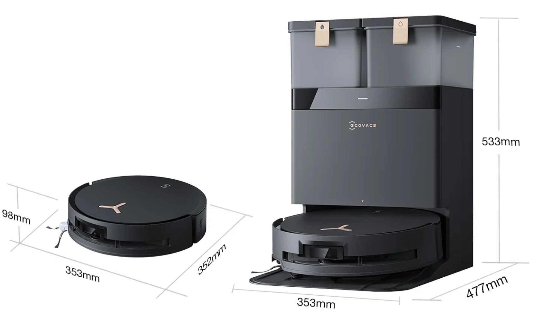 The new OMNI station is 350 x 477 x 533 x 7.6kg. It gets a long-awaited floor cleaning solution dispenser. It has a dirt sensor to ensure mops are cleaner, 45-75° hot water washing and 63° air drying, and a few design tweaks.