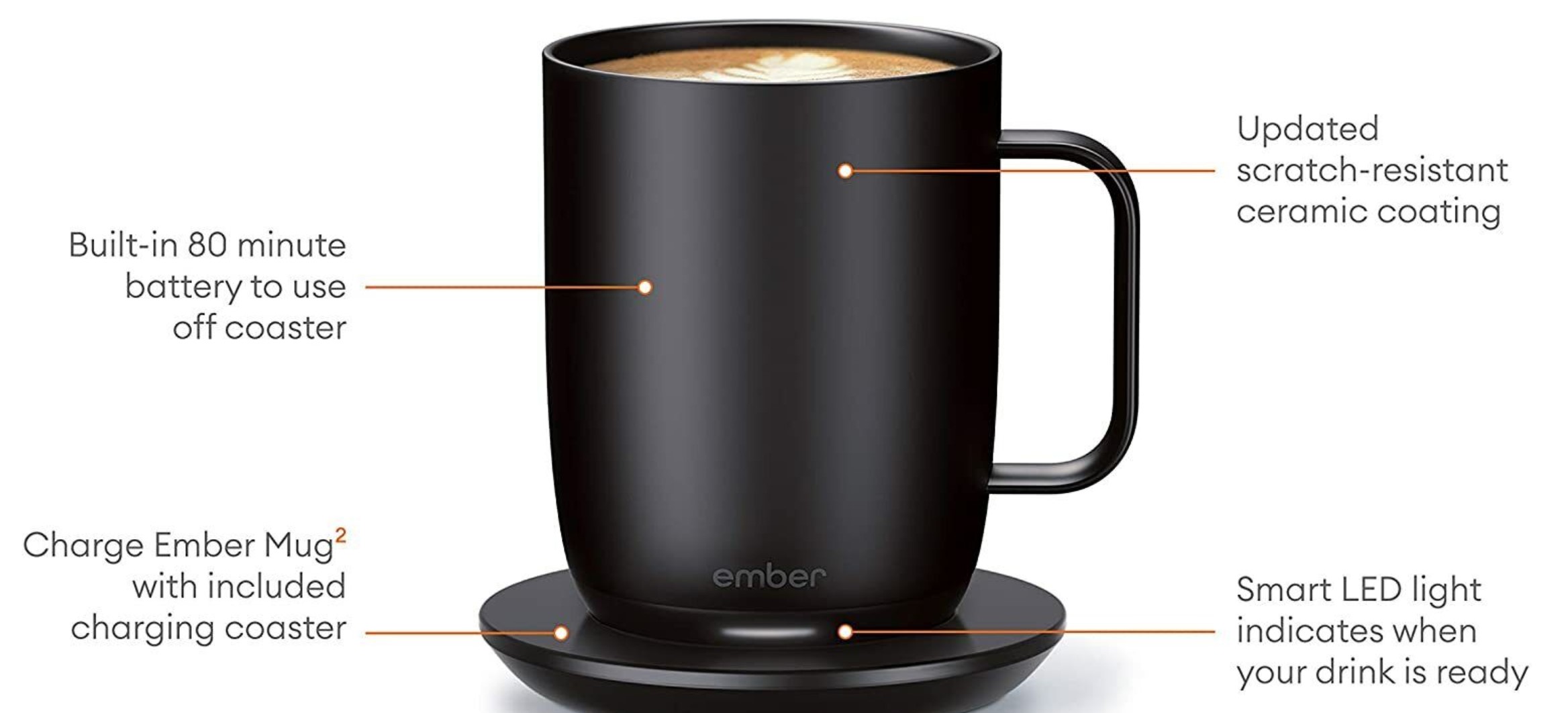The Ember Mug 2 is a rechargeable 295 ML (10oz) or 414ML (14oz) heating mug that, among other things, keeps your coffee/ tea or beverage at the preferred drinking temperature.