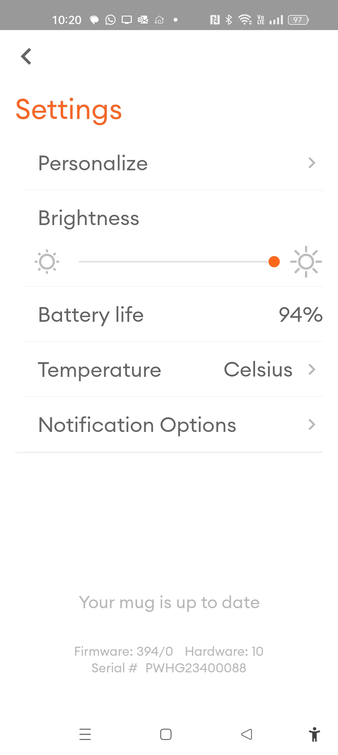 Download the Ember Mug app for Android or iOS. While it needs you to establish an account, it is purely to advertise to you – you can turn that off.