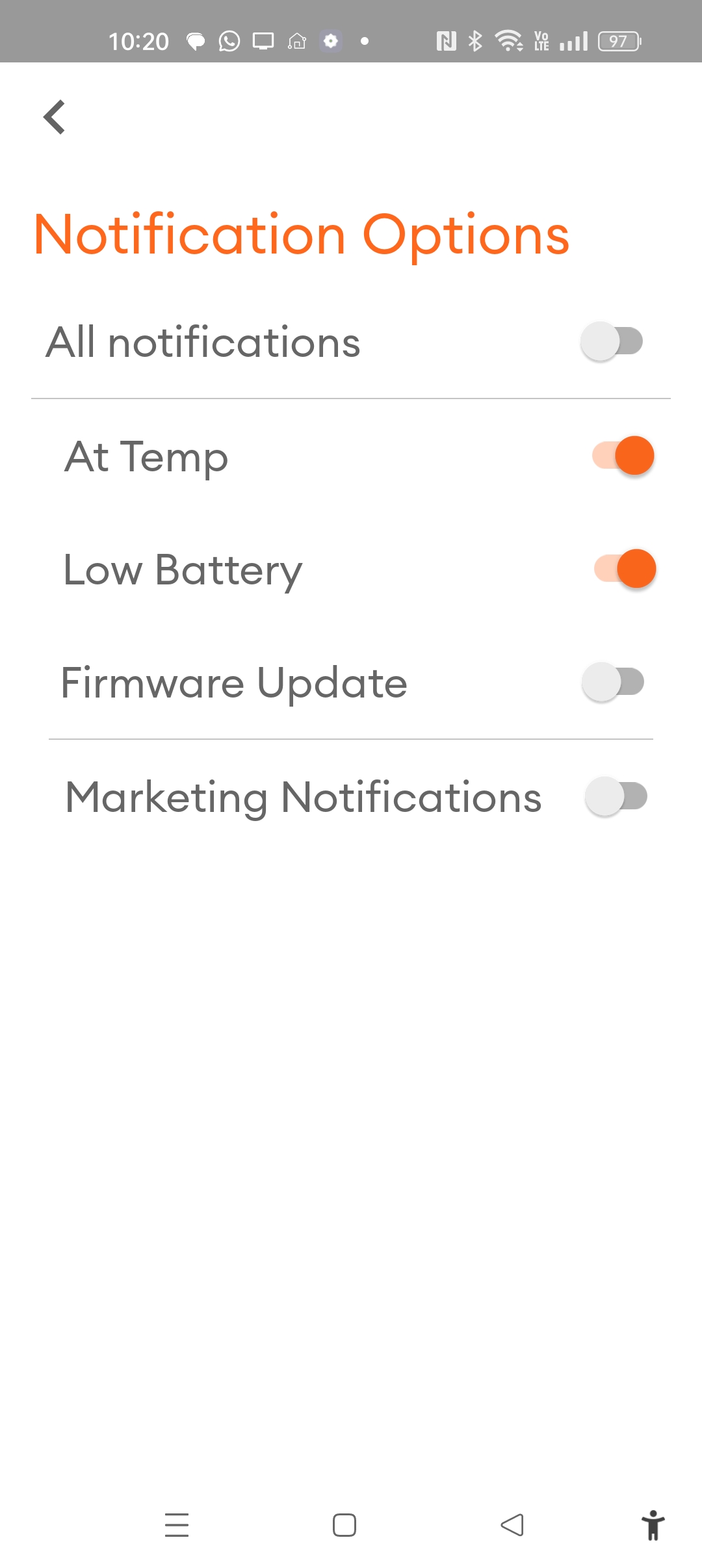 The app will send notifications when it reaches the set temperature if allowed.