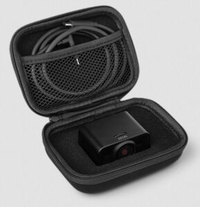 It has a Sony sensor, seven-element lens, 90° field-of-View and can electronically Pan, Tilt, and 8x digital zoom (this crops the 4K sensor image). It is fixed focus, so it has clear images between 1 and 3 metres – desktop/laptop or small group (with a tripod).