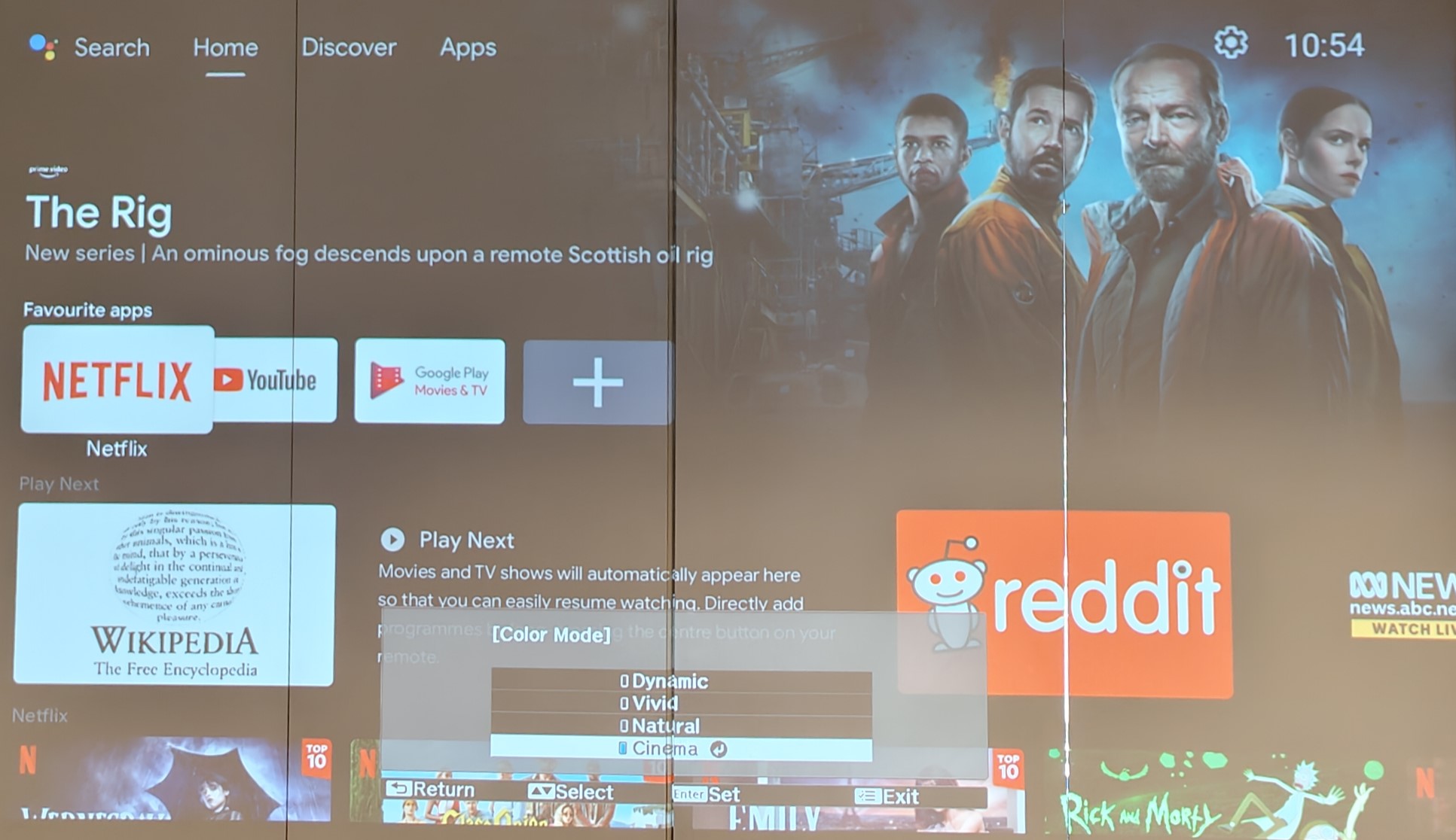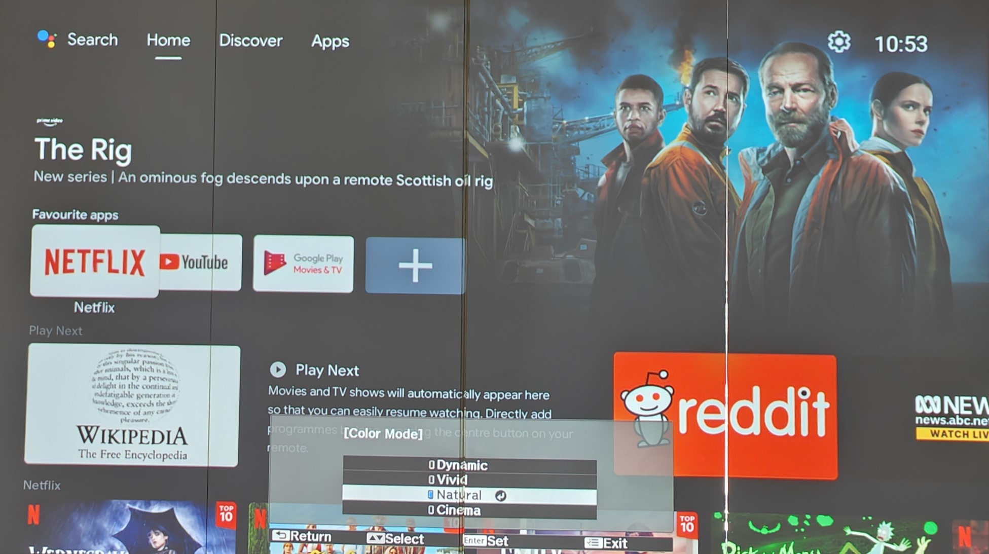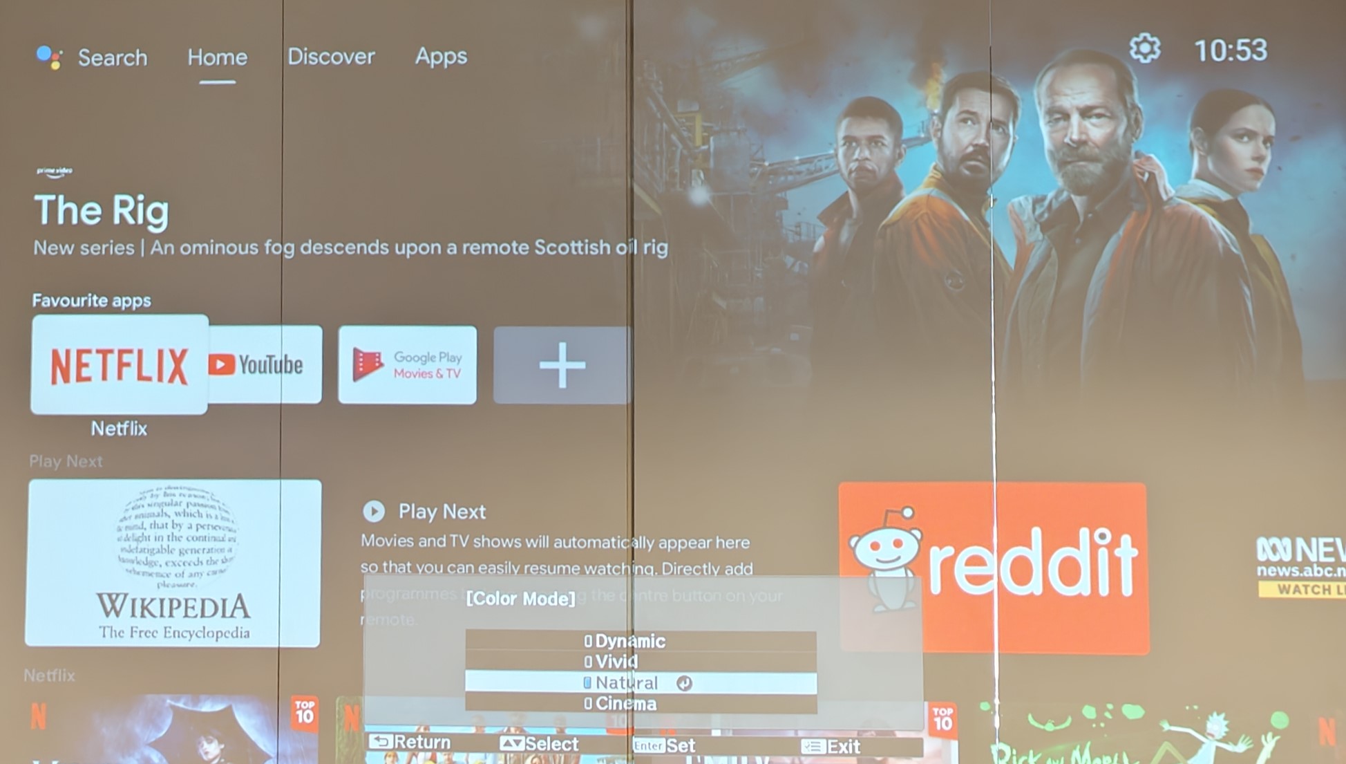 • Dynamic – prioritises brightness over colour accuracy, verging on a green tint – best for bright rooms