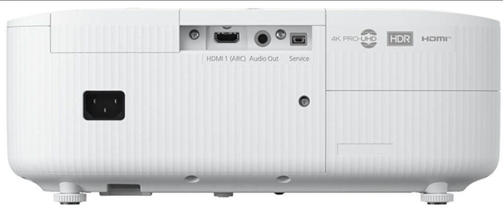 It is large at 275 x 333 x 131 mm (D/W/H) x 4.1kg, so placement is important. It has an amazingly long power cord (thanks Epson) – I am so tired of 1m cords. Underneath is an adjustable front foot.