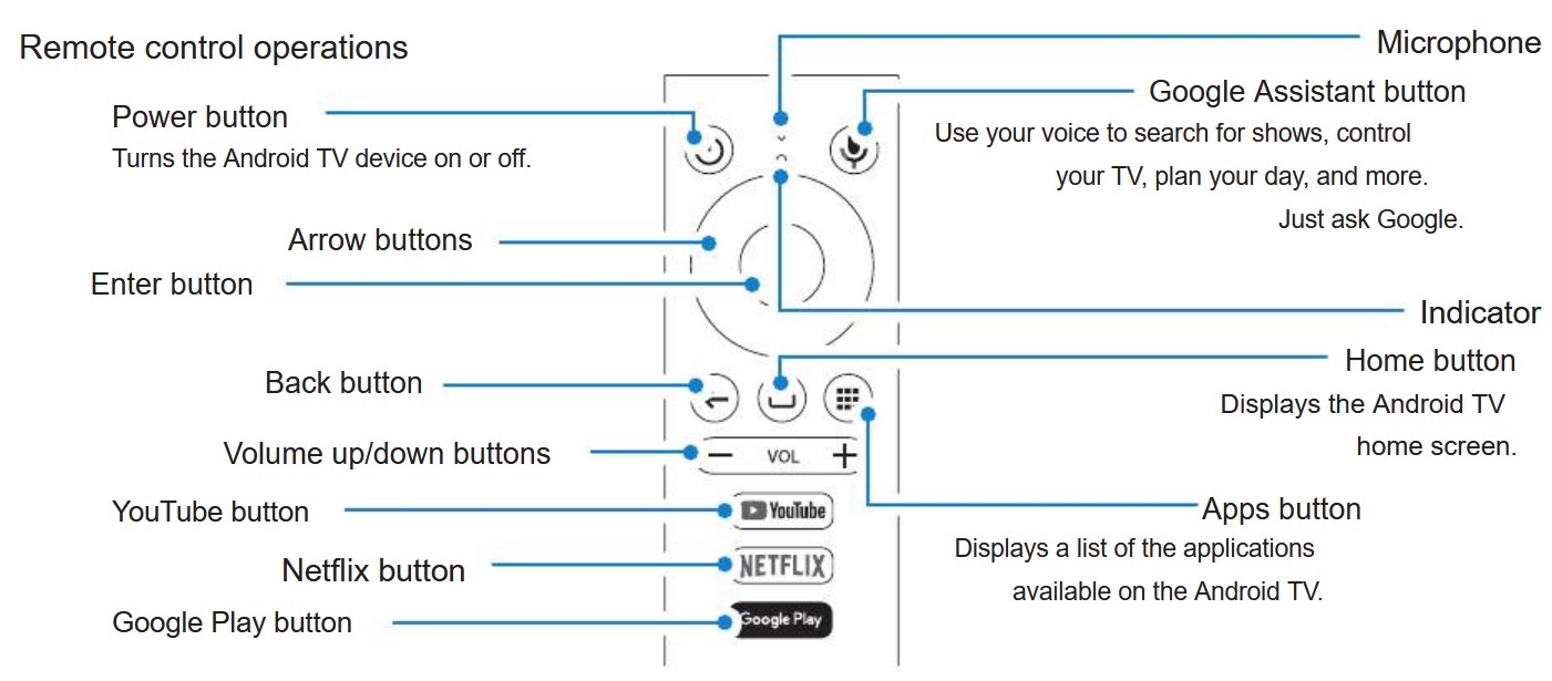 Google Assistant is included (as part of Android TV) and accessed via the remote control. You can also add this to Google Home to use smartphones or speakers.