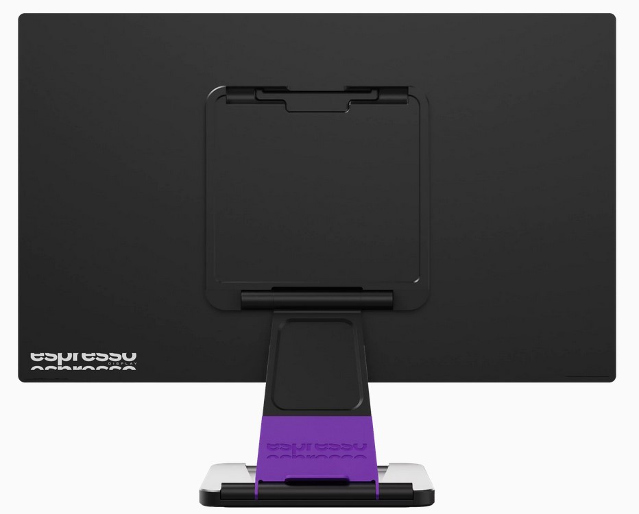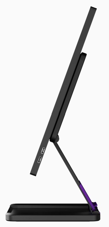 The 850g Stand Pro works at various angles and heights, including portrait and landscape modes. It is optimised for drawing and sketching and can be securely set to an 18° angle with a purple-accented built-in kickstand.