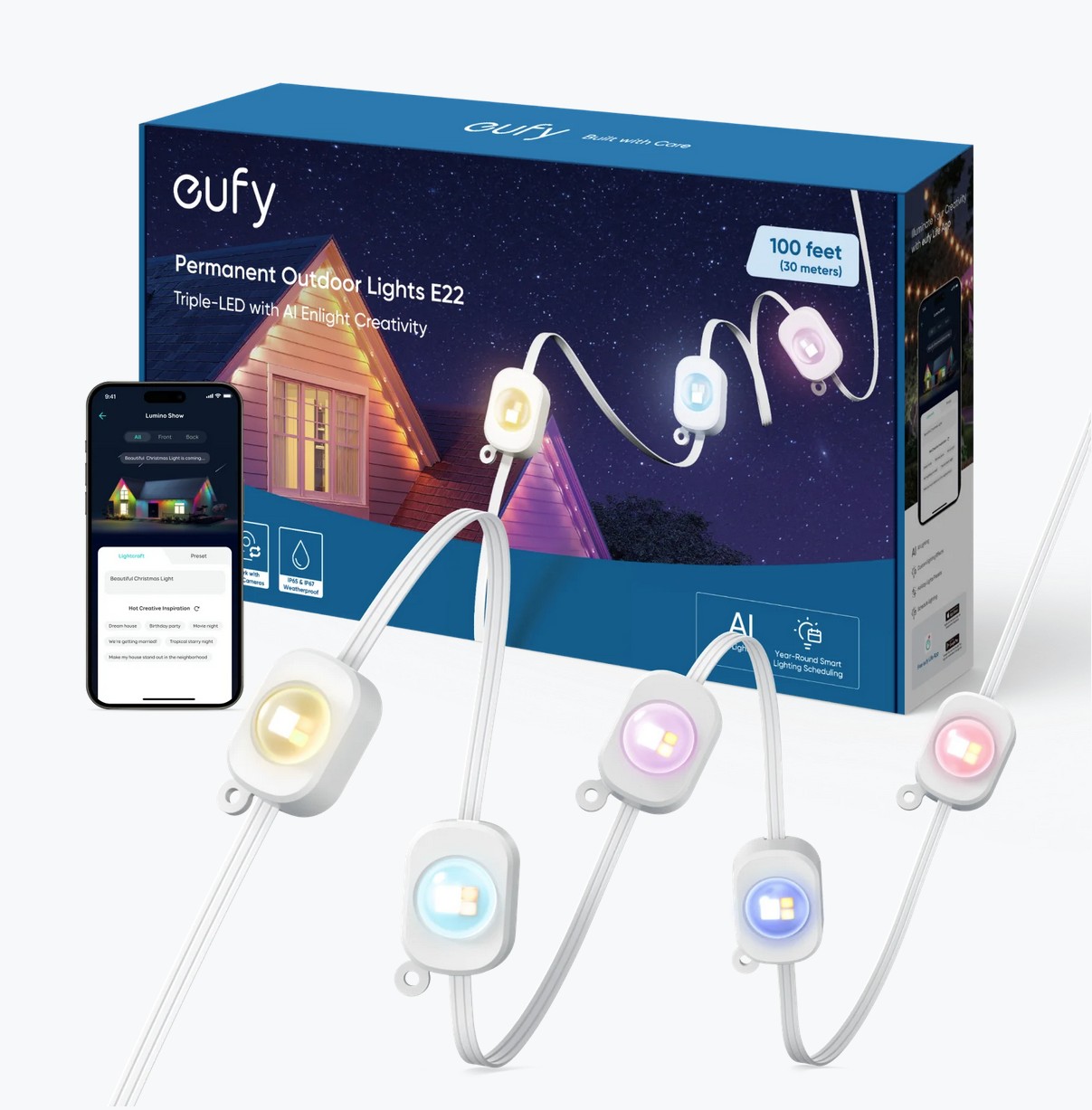 Eufy E22 Permanent Outdoor lights are triple LED lights backed by AI lighting experiences that can light up your garden or home to suit your mood, holiday spirit or even security needs.