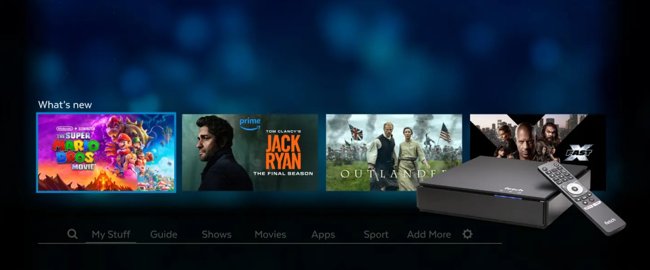 It comes with the Fetch 5 IR/BT remote, meaning that the black box can be hidden in a cupboard instead of within a few metres line-of-sight of the remote.