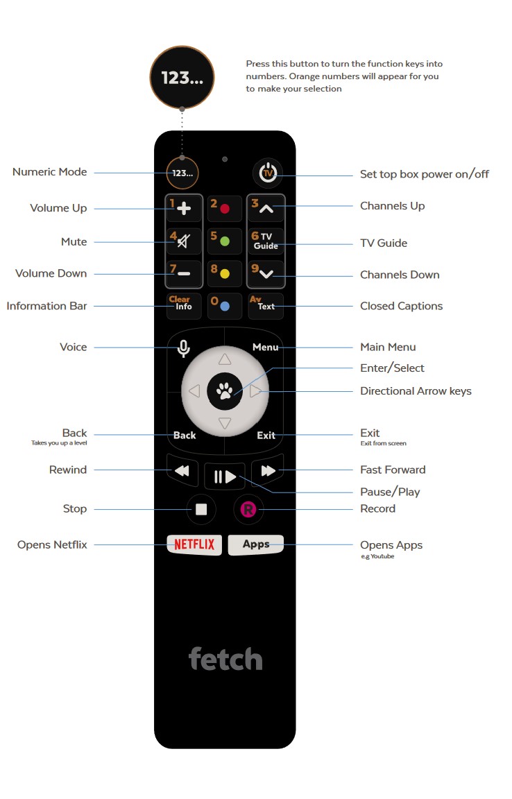 - Has voice control remote – ‘Fetch do this’.