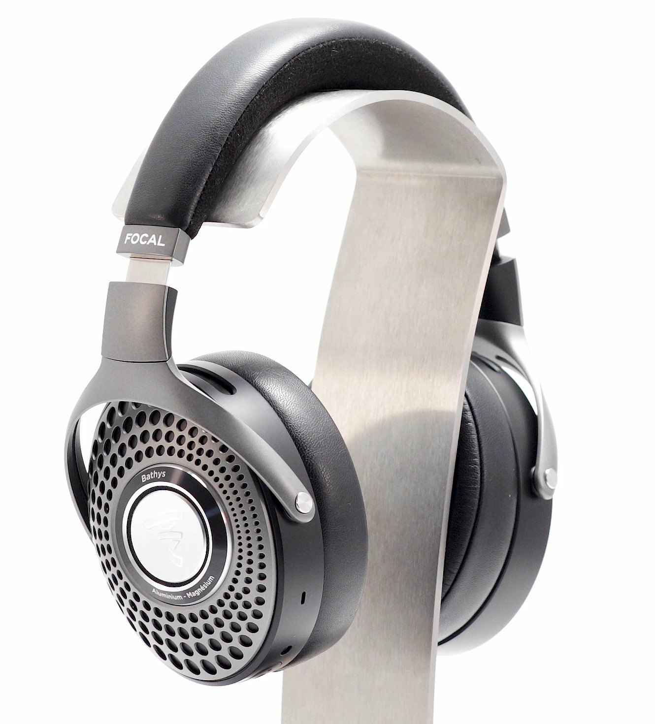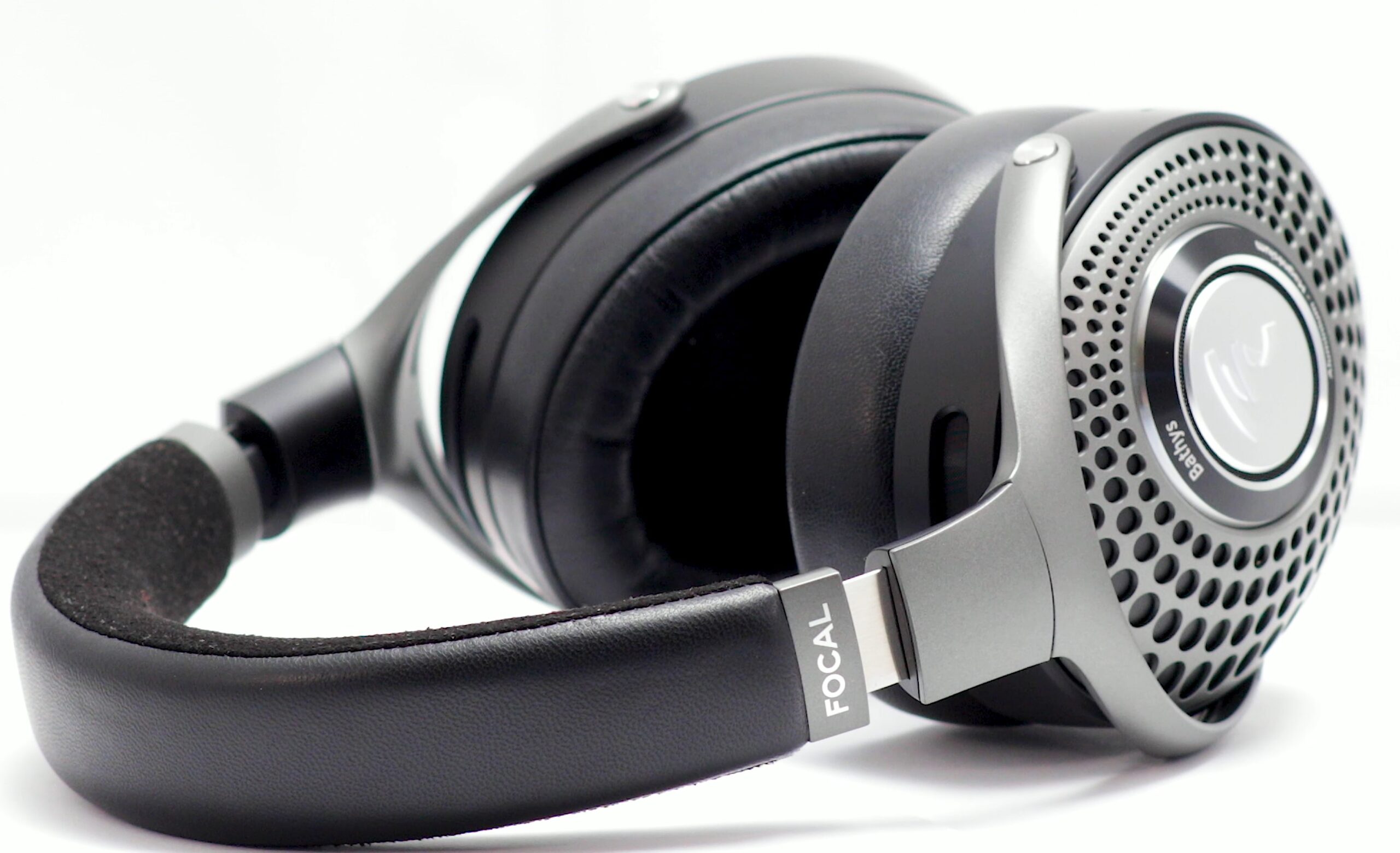 Magnesium yokes, genuine leather headband and robust Aluminium construction. The external earcup grilles reflect Focal’s distinctive headphones design code. This is a big headphone.