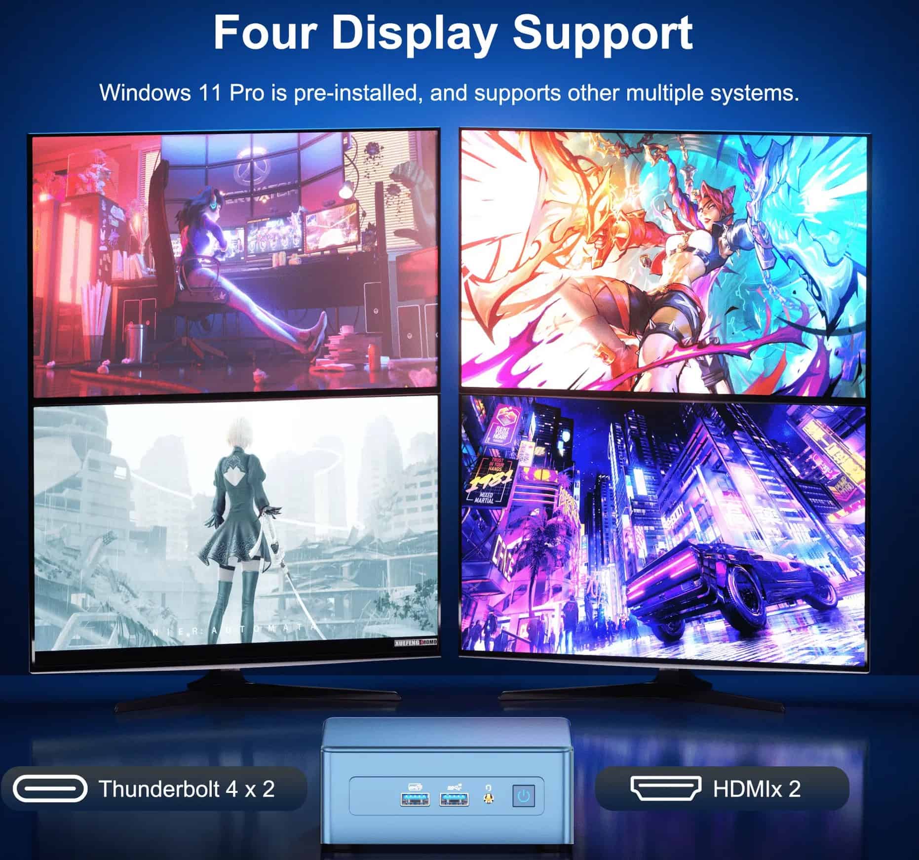 In any case, it has two HDMI ports and two USB-C 4.0 ports that can simultaneously support 4x 4K@60Hz monitors (maximum GPU support), or you can add an expensive TB3/4 dock and support these plus an additional USB-A, USB-C, and more ports.