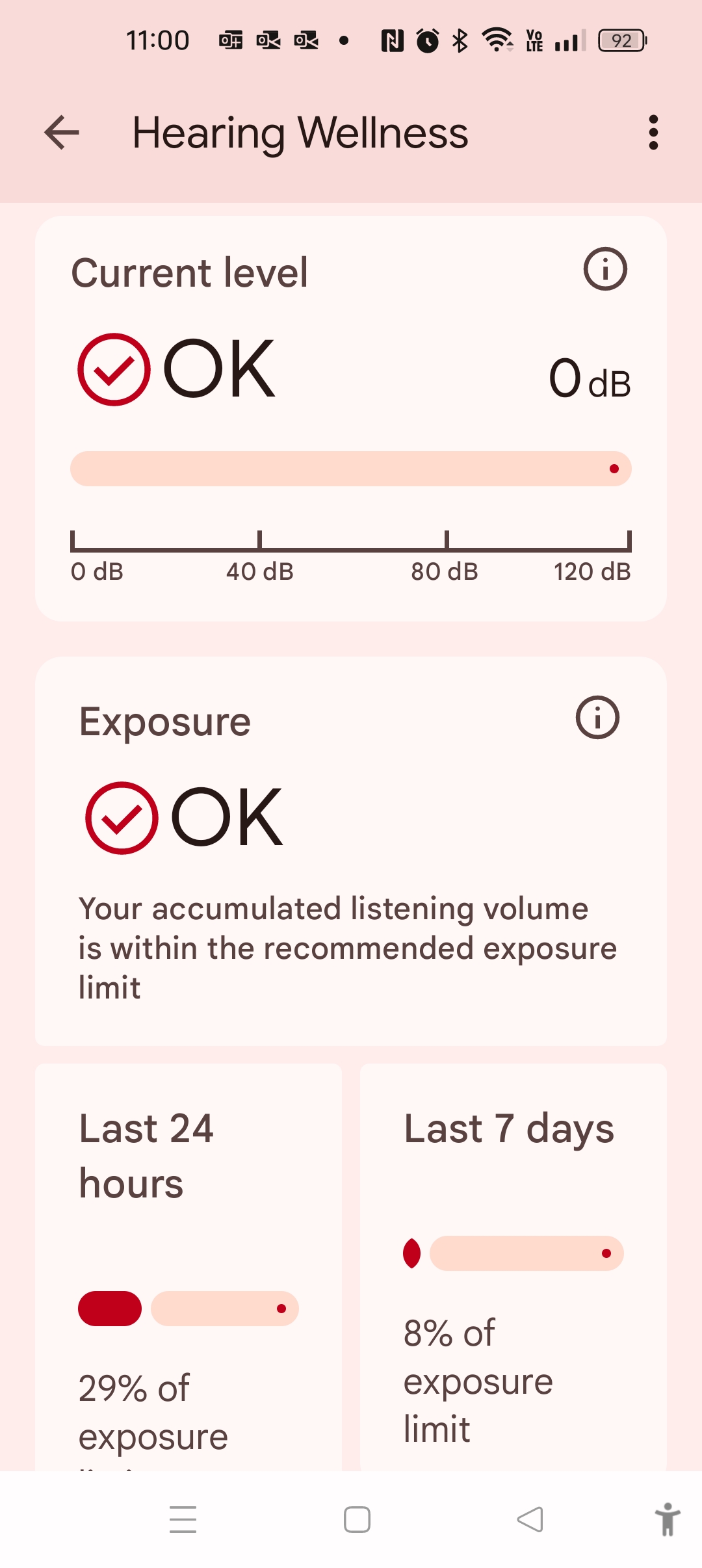 • Hearing Wellness (measures accumulated listening volume and whether it is within acceptable limits.