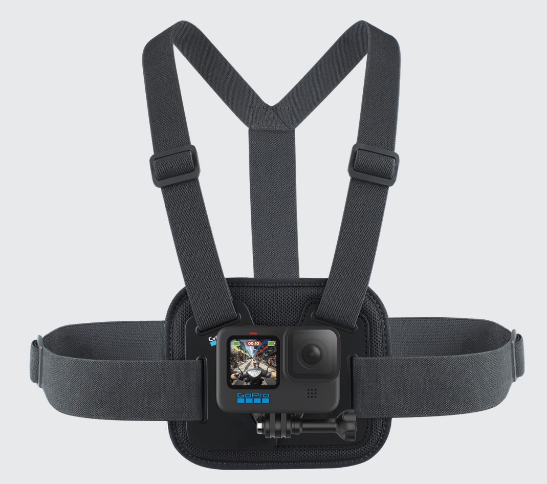 (Tim, you can use the Chesty body cam mount because the head strap would likely interfere with your helmet).