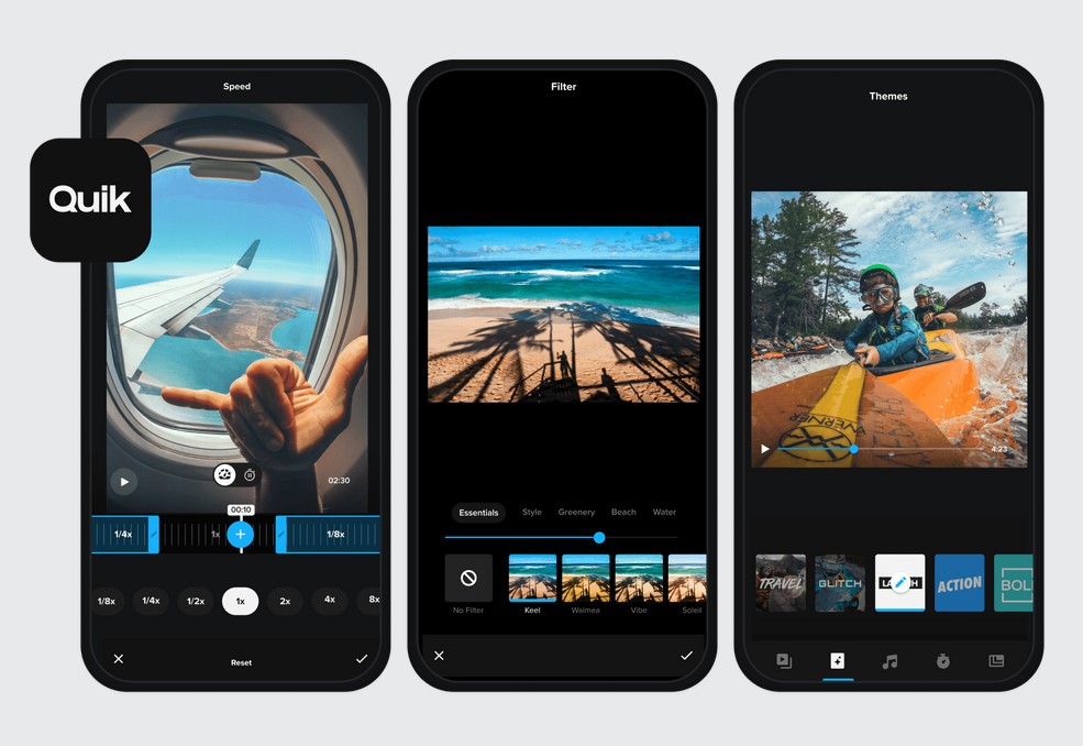 - Advanced editing capabilities in the GoPro Quik app (special slo-mo, filters, themes, music