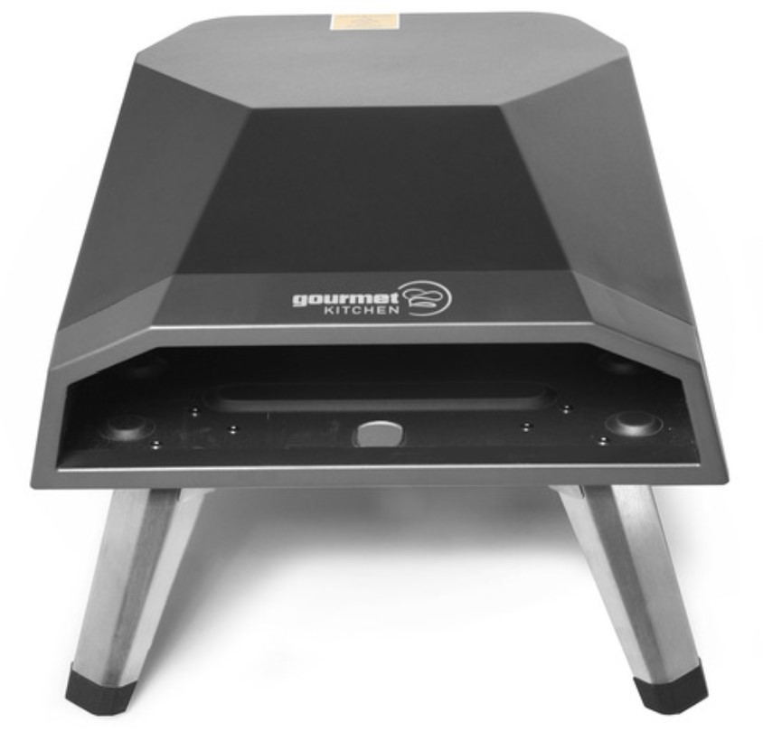 The Gourmet Kitchen Pizza Oven is a portable LPG gas pizza oven that reaches 500° and cooks 12” pizzas in 60 seconds. It is about half the price you may expect to pay for a ‘brand-name’ pizza oven.