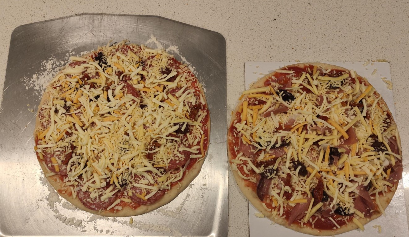 We have also started experimenting with breakfast pizza – bacon, egg, sausage, mushrooms, cherry tomatoes, onions, spinach, BBQ sauce (instead of Passata), etc. The best results are to pre-cook the ingredients (except the eggs). As it cooks in 60 seconds, the eggs are very soft, and we found that spreading the egg whisk (yolk and whites) around a little gives the best results.