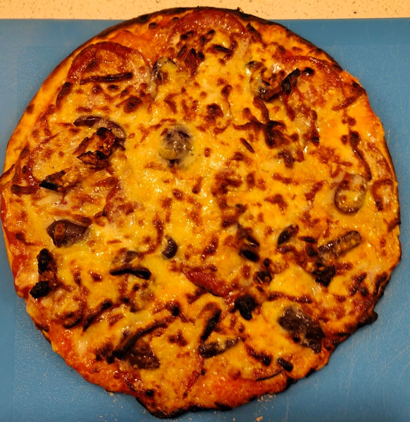 The results were superb. One piece of advice—use a timer and rotate the pizza every 30 seconds. The base is beautifully brown, the mozzarella and bocconcini are melted and browned, and the ingredients (pepperoni, olives, sun-dried tomatoes) are cooked. Our edges were a tad burnt—yes, 60 seconds is enough.