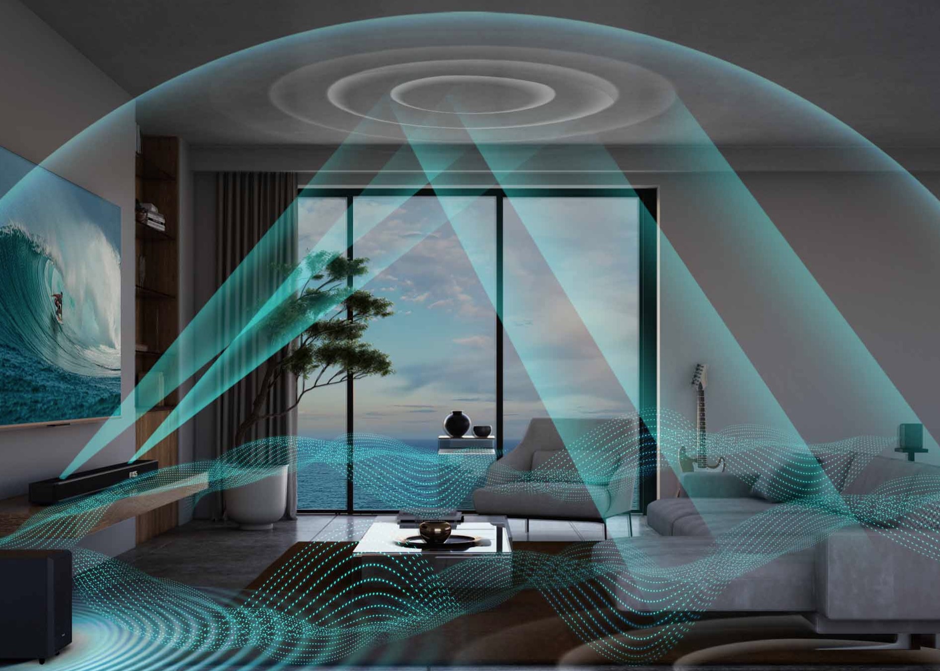 True discrete DA soundbars with rear speakers can create a dome about 3m high x 4-5m in diameter, matching the ideal viewing distance from a 4K TV.
