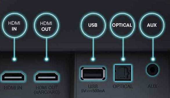 - HDMI eARC or ARC 2.0b 18Gbps. It will pass through 4K@100Hz and DV 4.2.0 at 8 bits (25% of uncompressed colour information of 4K@4:4:4).