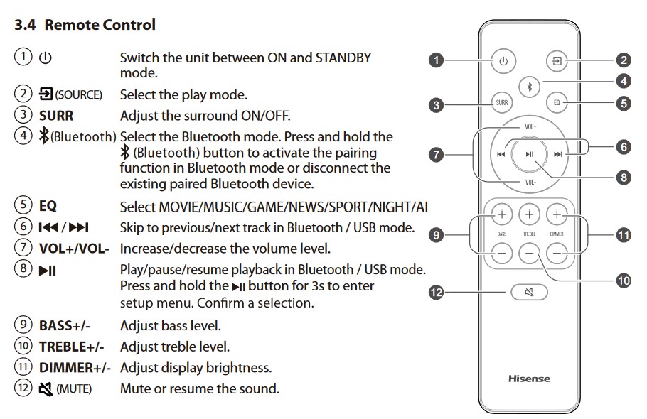| Website | 2024 soundbar range Hisense AX5120G Product page There is no Australian download manual. US manual here. |
