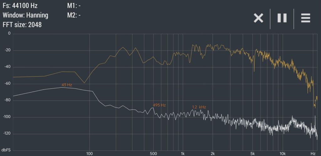 There is no low, mid (<100Hz), and very little high bass (<200Hz). That means no ‘oomph’. Sound starts at 200Hz (low-mid) but is uncontrolled with peaks and toughs pretty well to 10kHz and then drops off to 20kHz.