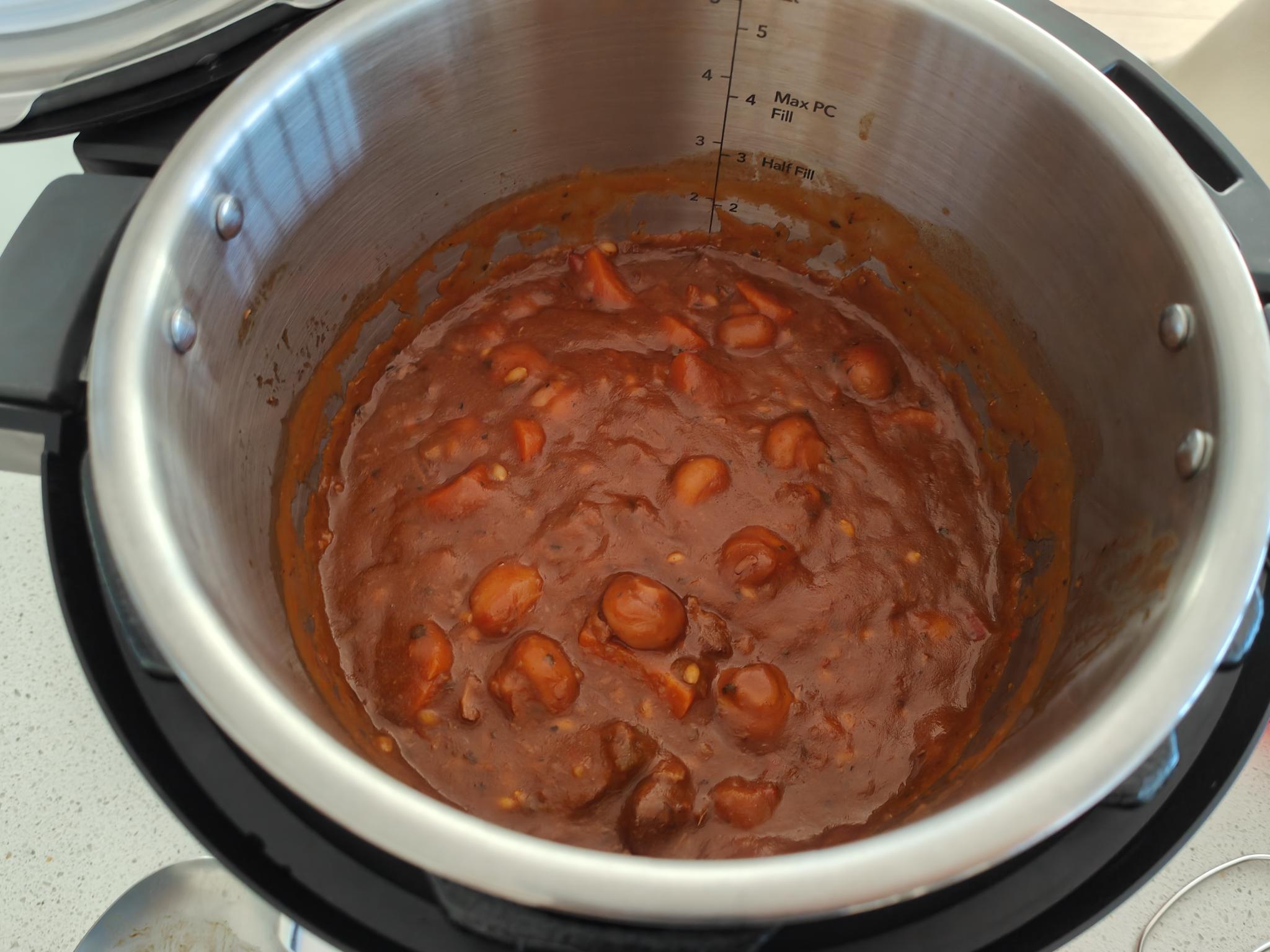 We cheated and used a Masterfoods Slow Cook sauce, cubed beef chuck steak, stock (canned minestrone soup), carrots and red wine. Chuck is a muscley, fatty cut that is often stringy when slow-cooked. The Instant Pot Pro Plus rendered this meat perfectly and added to a slow-cooked meal’s wintery warmness. The automatic keep warm feature is terrific.
