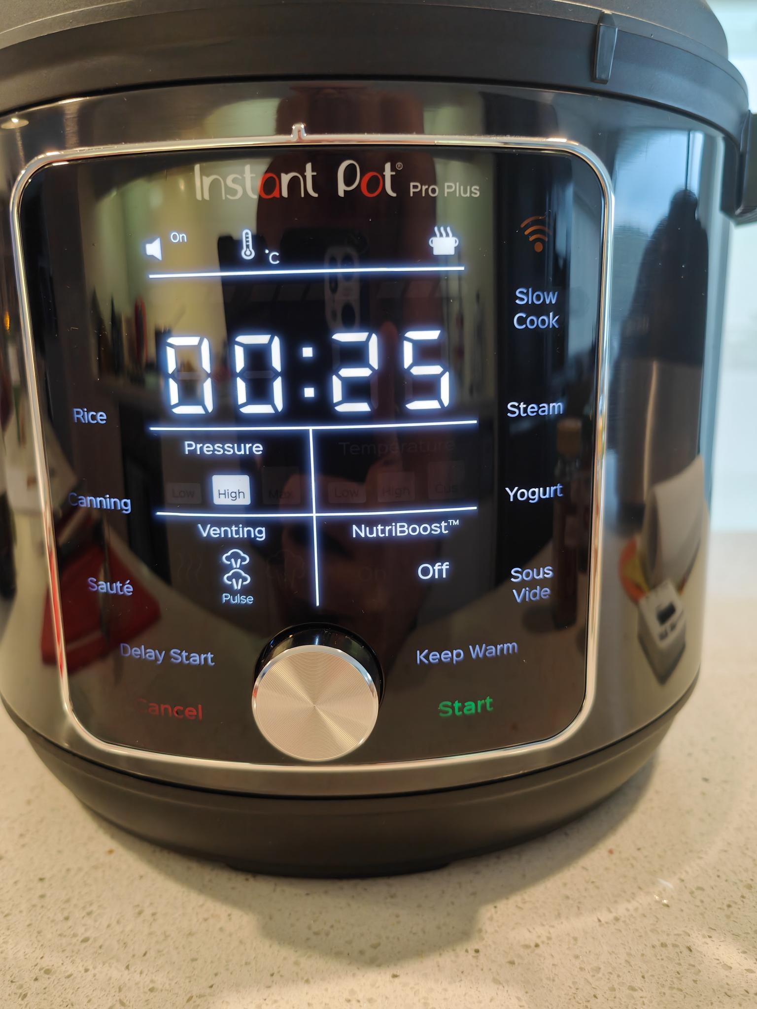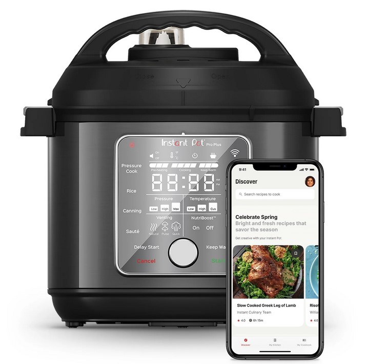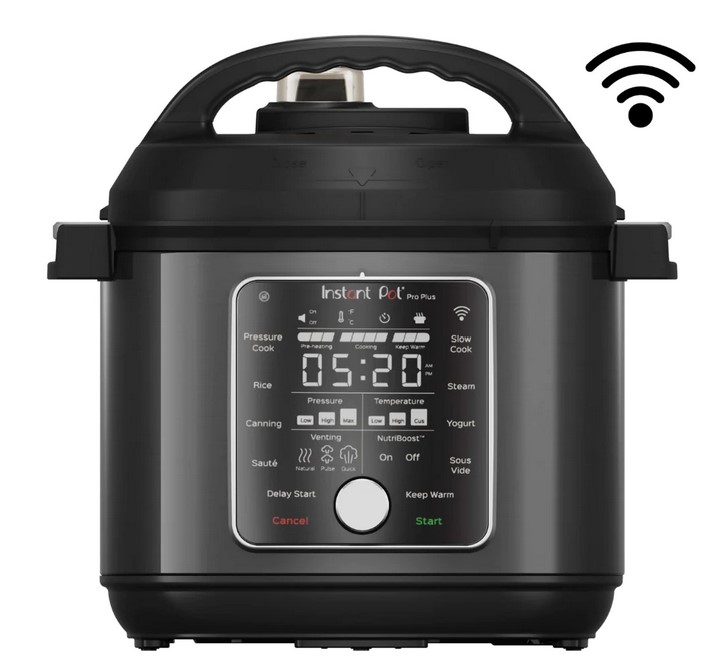 The Instant Pot Pro Plus is a 5.7 litre, 10-in-1 pressure cooker, slow cooker, rice cooker, steamer, sauté pan, yogurt maker, warmer, canning, sous vide, and NutriBoost. You can also use the Wi-Fi-connected App.
