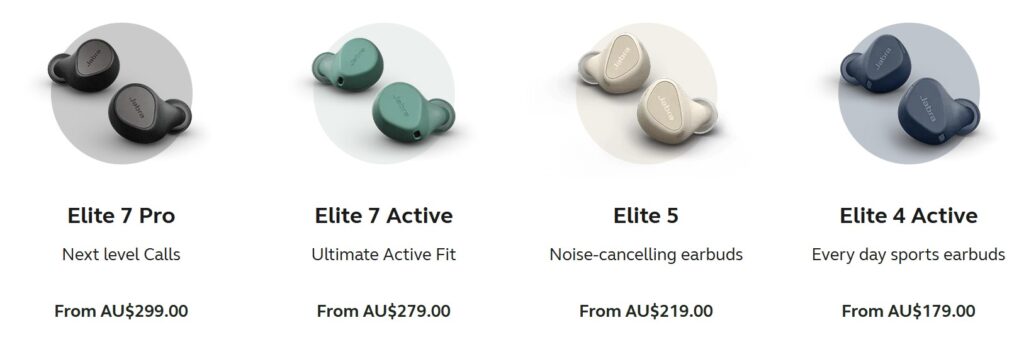 The Jabra Elite 5 is the middle child – under the Elite 7 Pro/Active and above the Elite 4 Active and Elite 3. At $219, they offer very good value and performance and some reasons to choose them over the Elite 7 Pro.