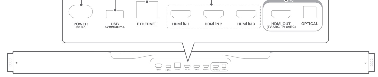 • HDMI eARC/CEC. HDMI 2.0, 18Gbps, 4K@50/60Hz, Pass through Dolby Vision and HDR10 (not 10+). Set the TV’s audio stream to Bitstream or Raw (not PCM) to enable DA and surround sound pass-through. You must use an HDMI 2.0 or later certified cable.