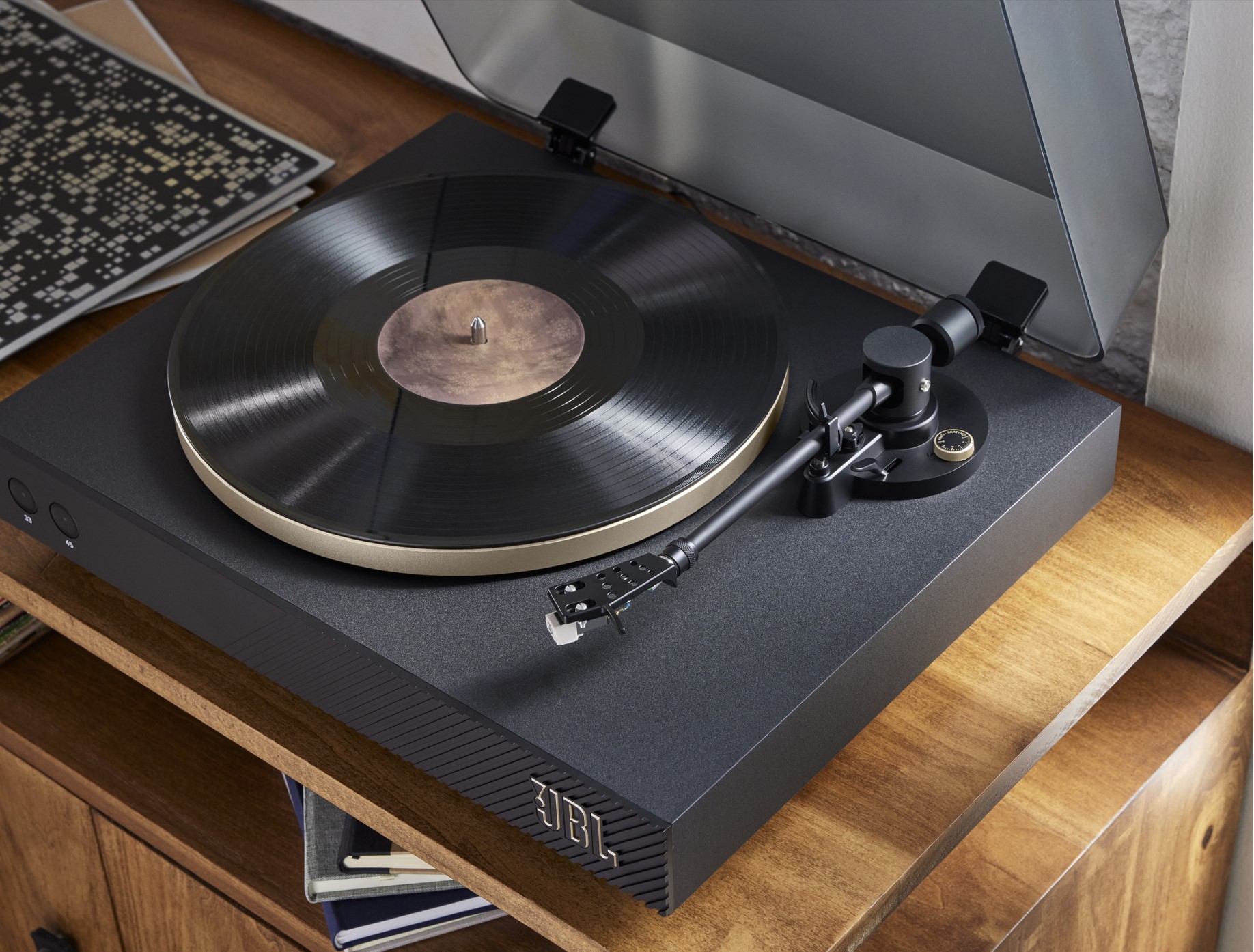This is a good mid-range turntable for all your precious vinyl. I like its simplicity and JBL-quality build.