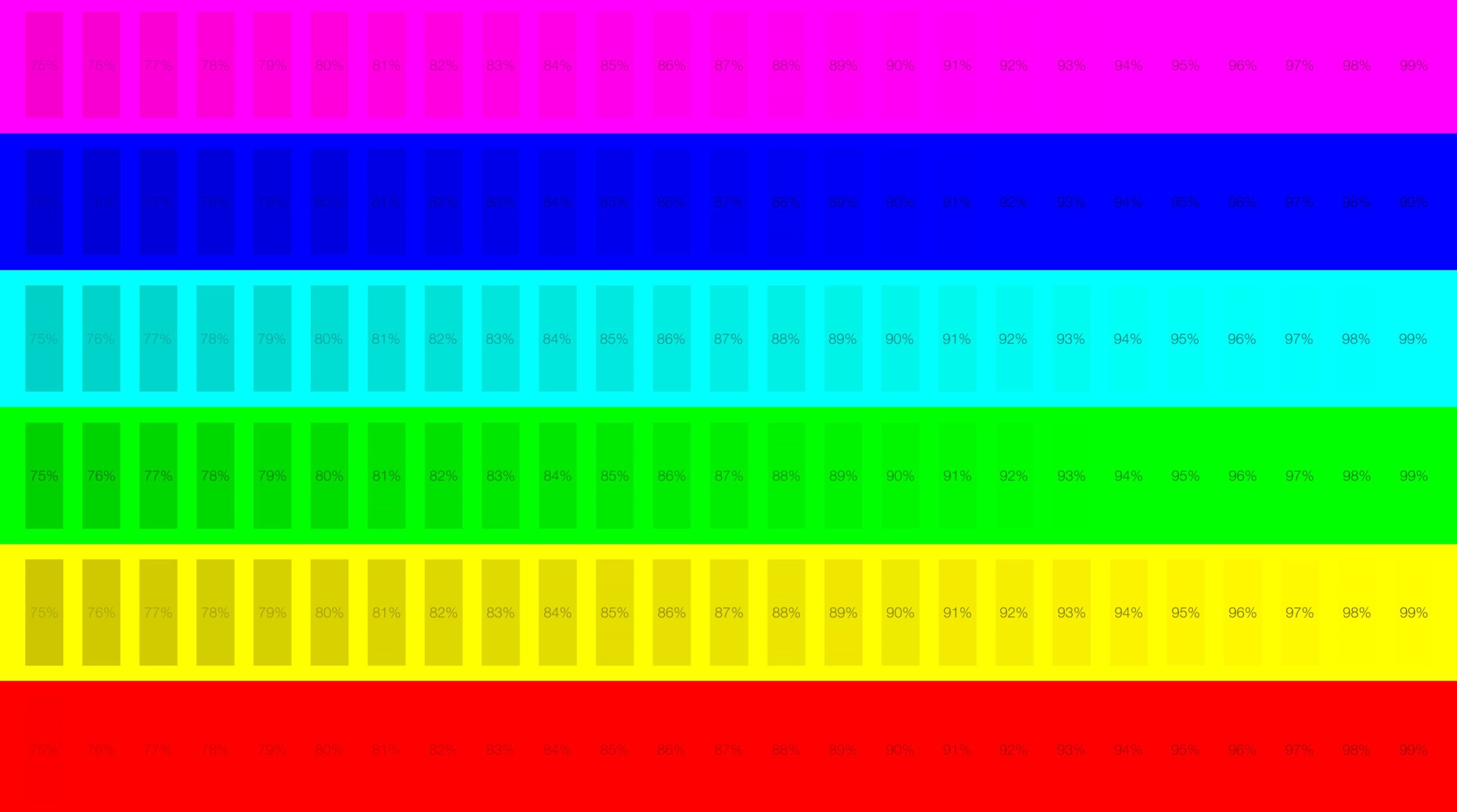 Primary colours scale beautifully from 0-100% gradient. Secondary colours can ‘bunch’ slightly in tests, but you will never notice watching TV content.