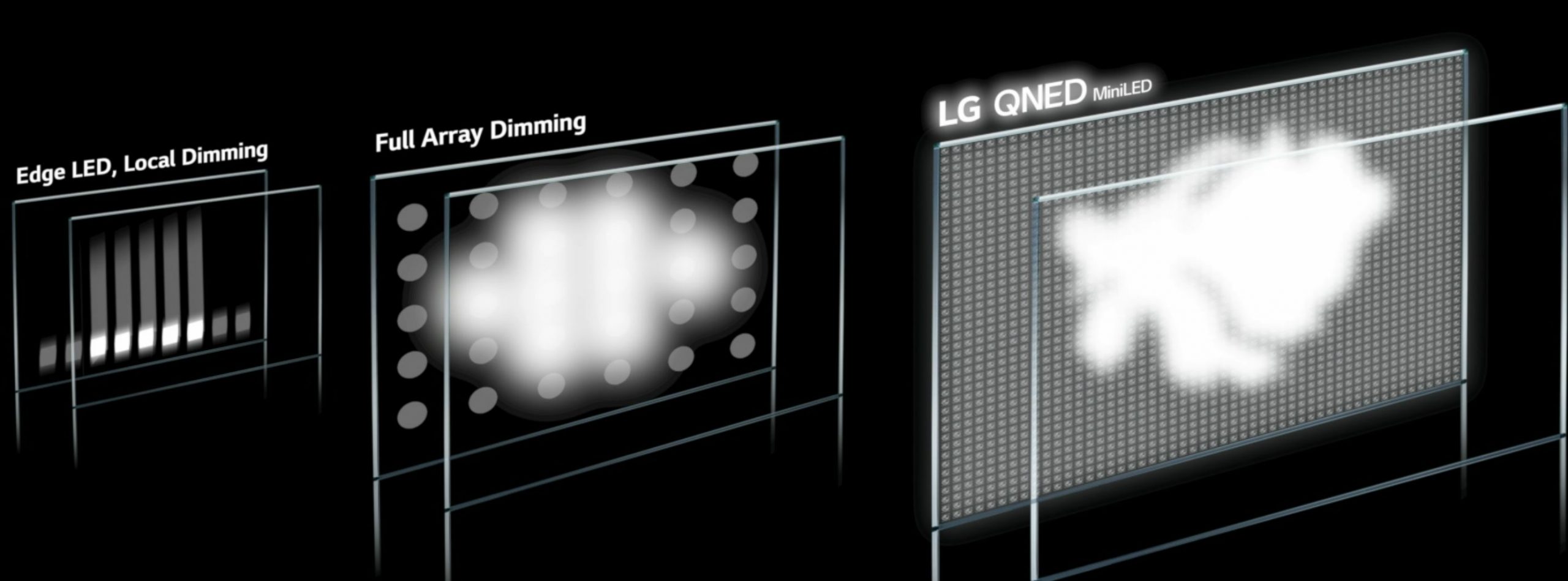 At launch, I saw the LG QNED85 model (next level down), which was pretty good, too – a fewer dimming zones. The LG QNED80SQA, however, is Edge-Lit and not nearly as bright as the QNED91.