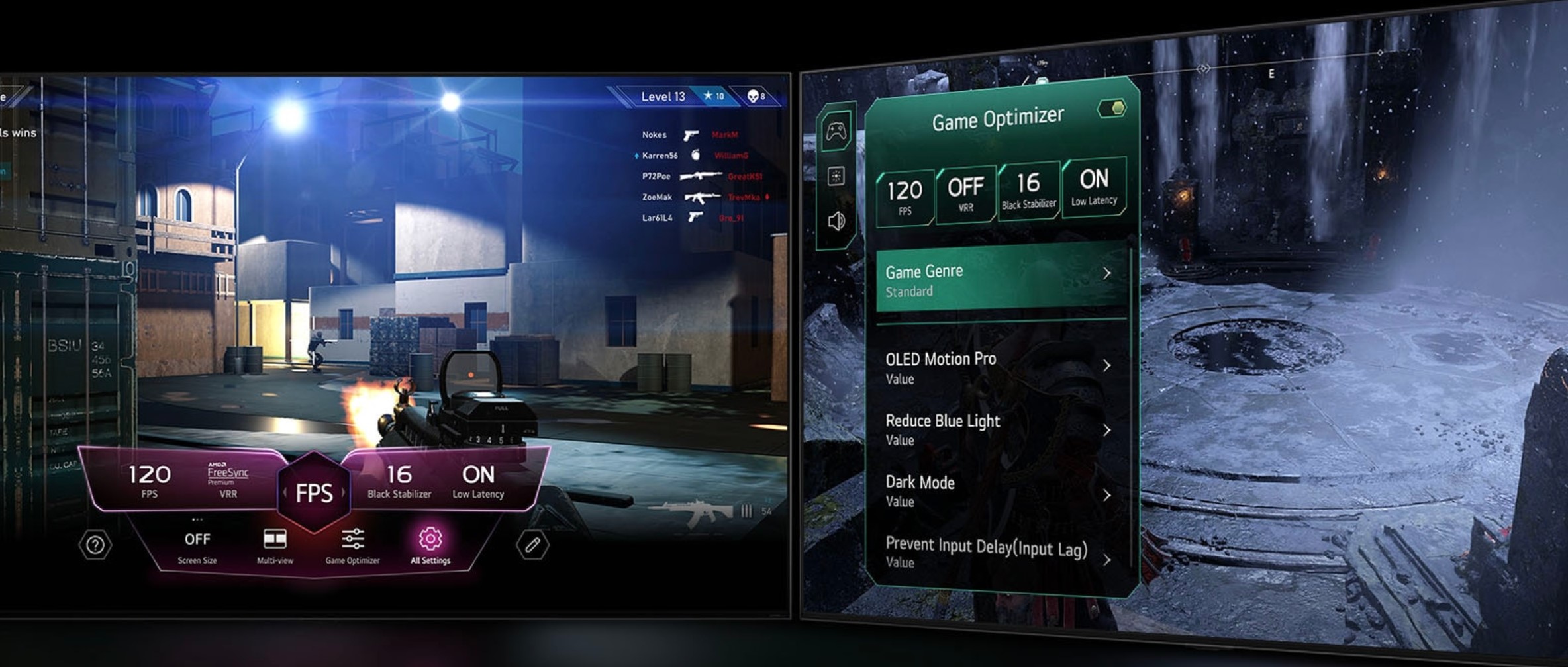 LG was one of the first to implement 4 x HDMI 2.1 with 4K@120Hz and full support for Xbox and PlayStation (not Dolby Vision) games. It supports selectable game genres, Reduced Blue Light, Dark Room mode, Minimise input lag, VRR 120Hz, ALLM, HGiG, G-Sync, AMD FreeSync Premium, and more. Lag is <13ms.