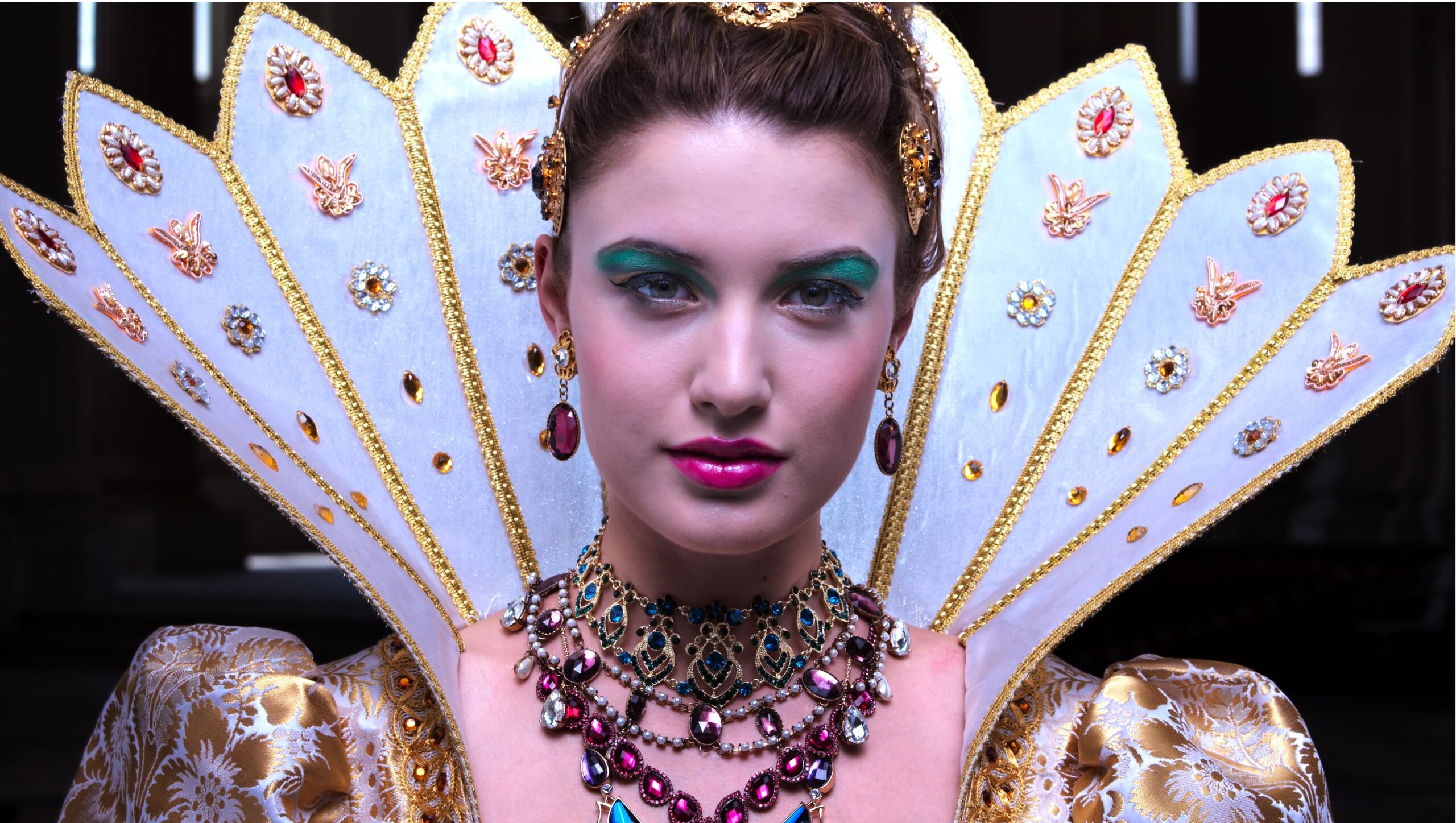 You may not be able to see the differences between the settings below as you will likely view this on an 8-bit phone screen or desktop monitor. Look for details in the hair, green eye shadow, red lips and jewels. Also, look at the black background for subtle tone differences.