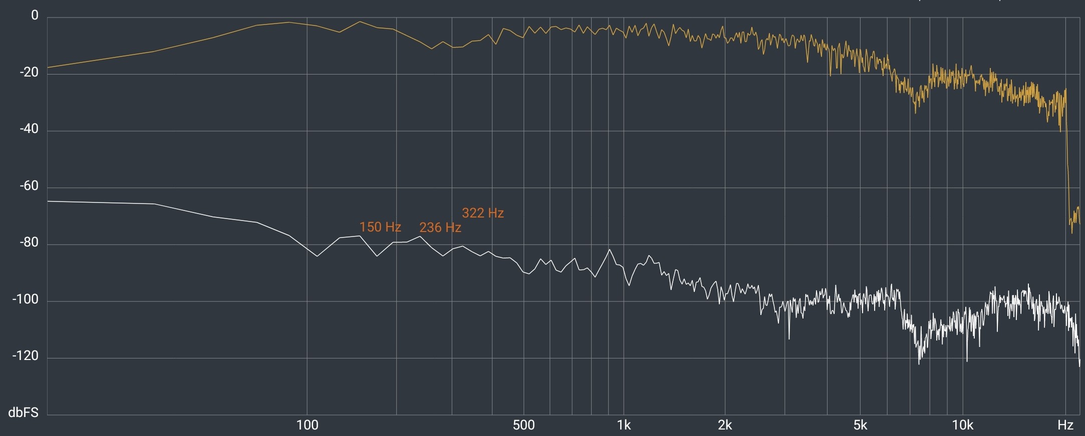 If you have a WOW TV (tested on LG QNED86), then the gold line bass builds solidly from 30Hz to 70Hz, where the frequency flattens (good) to 7kHz, dips slightly to avoid treble harshness and is flat then to 20kHz.The TV speakers don’t affect bass but help smooth out some of the choppy mid-and-late-mid and treble, making for very much more pleasant TV listening.
