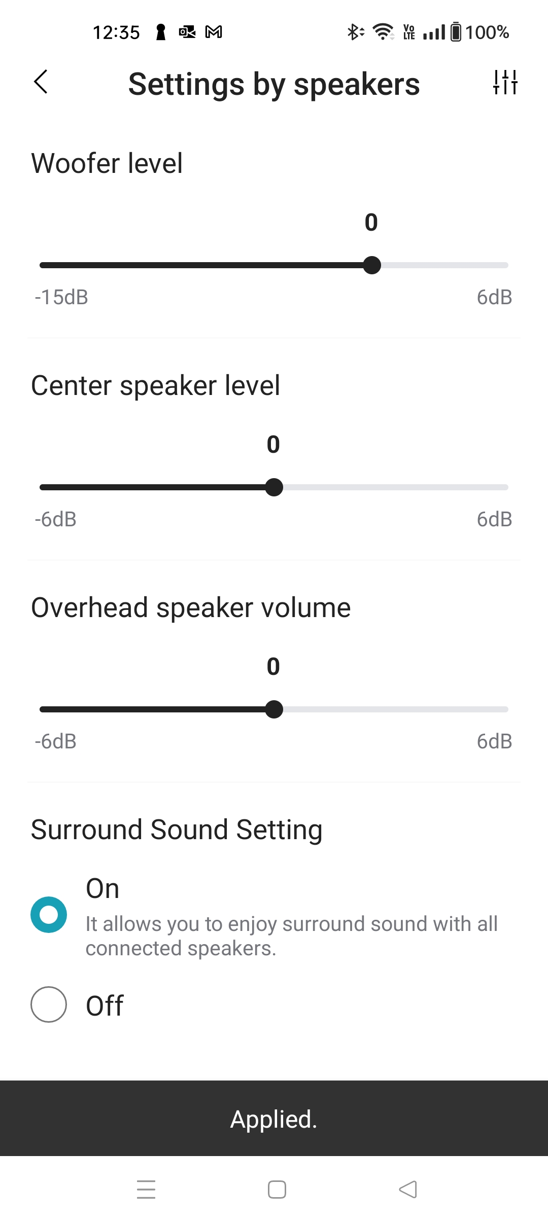 - Can adjust the volume levels of each speaker but no auto room tuning.