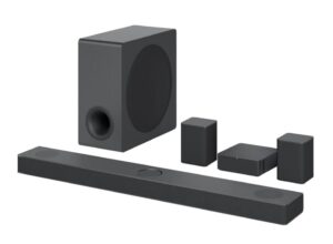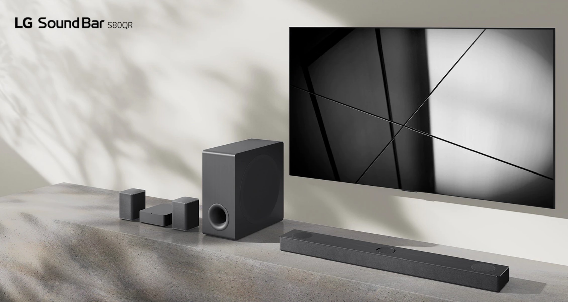 The LG S80QR 5.1.3 Dolby Atmos soundbar is identical to its S80QY 3.1.3 cousin with the addition of two rear speakers. It is LG’s lowest-cost way to have a real Dolby Atmos soundbar with dedicated left and right rear speakers.
