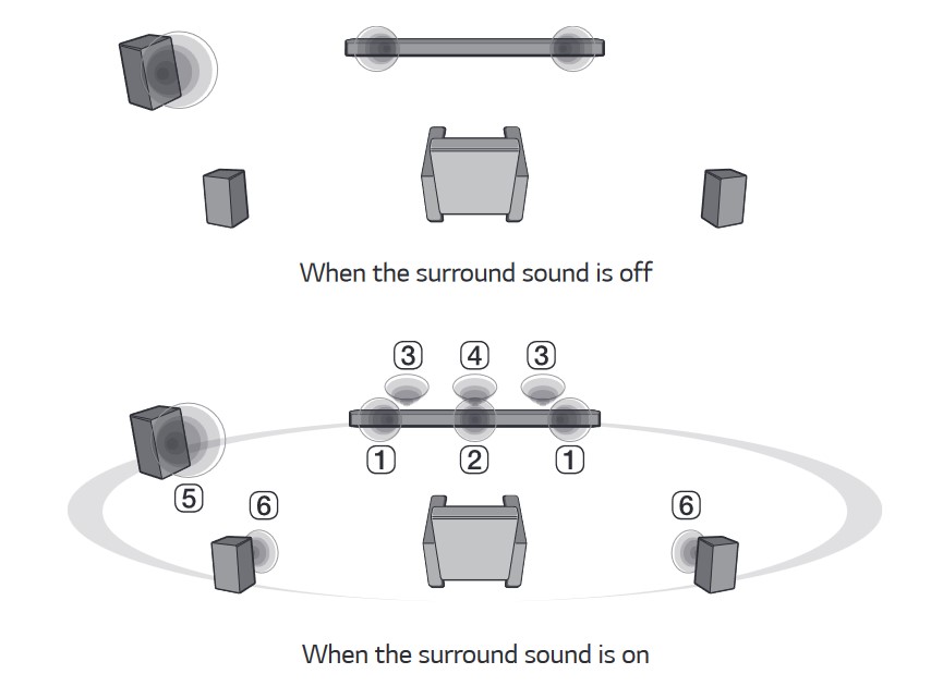 The Sound effect pre-sets (all via the remote) have different influences on the rear sound.