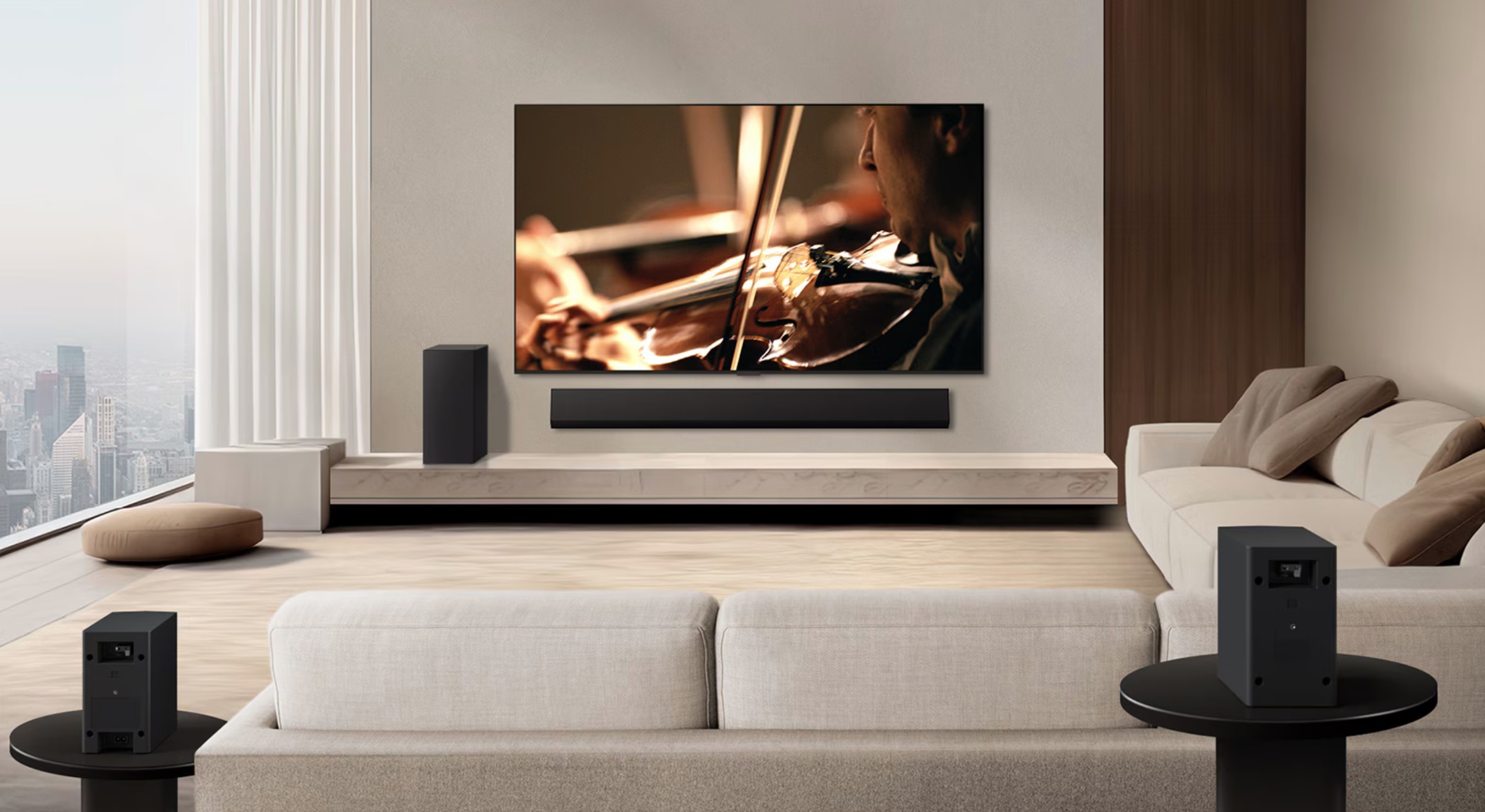 I like the soundbar—it is acceptable as a 3.1 to add decent sound, especially clear voice, to any TV. You would buy it for its stand-up format and if you did not care about immersive DA. We do not usually comment on price, but this $1499, 3.1, 420W stand-up bar costs way more than the $599 LG S65Q 3.1, 420W, flat, non-WOW bar. Having heard both, the sound signature is almost identical.