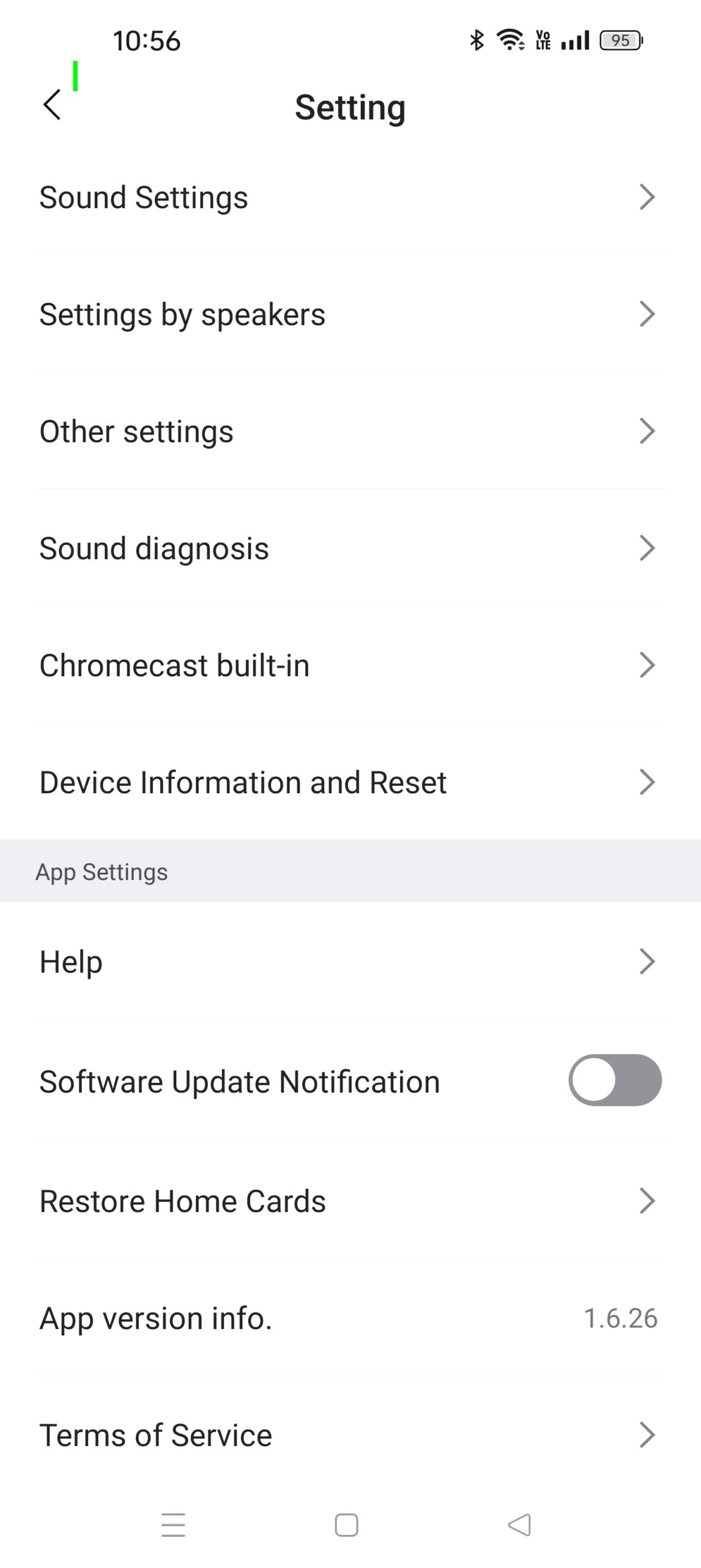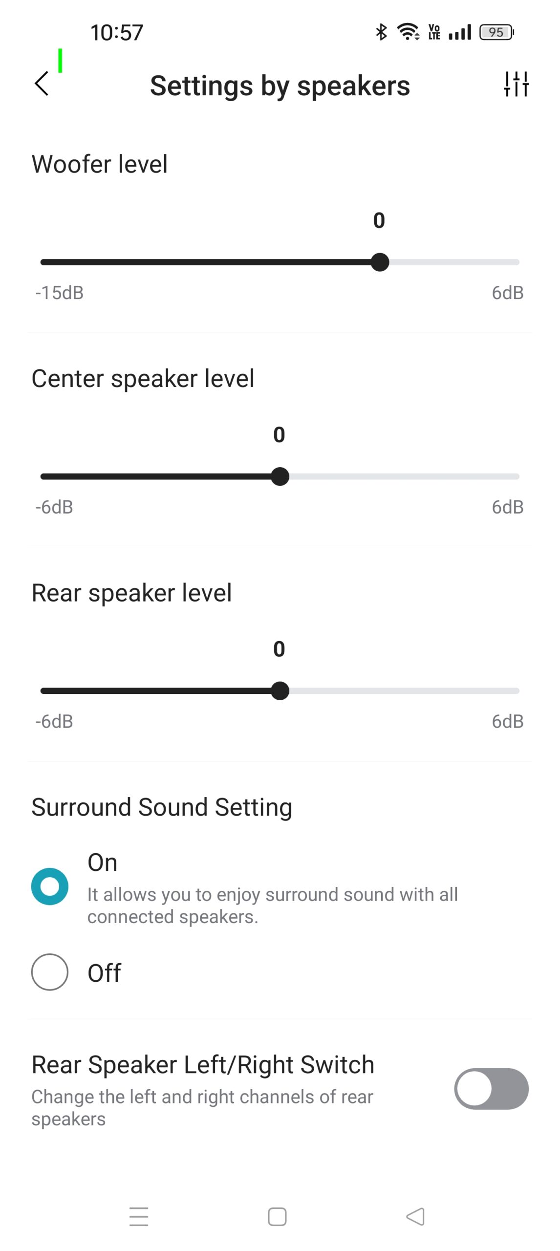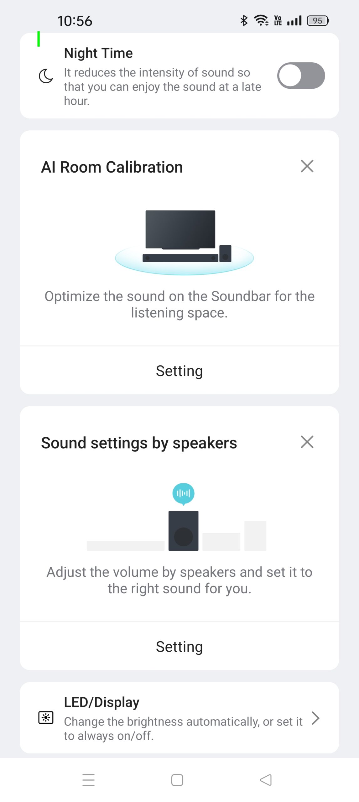 The LG Soundbar app allows for customisation of all settings. It also offers AI Room calibration, firmware updates, sound diagnosis, and an online manual.