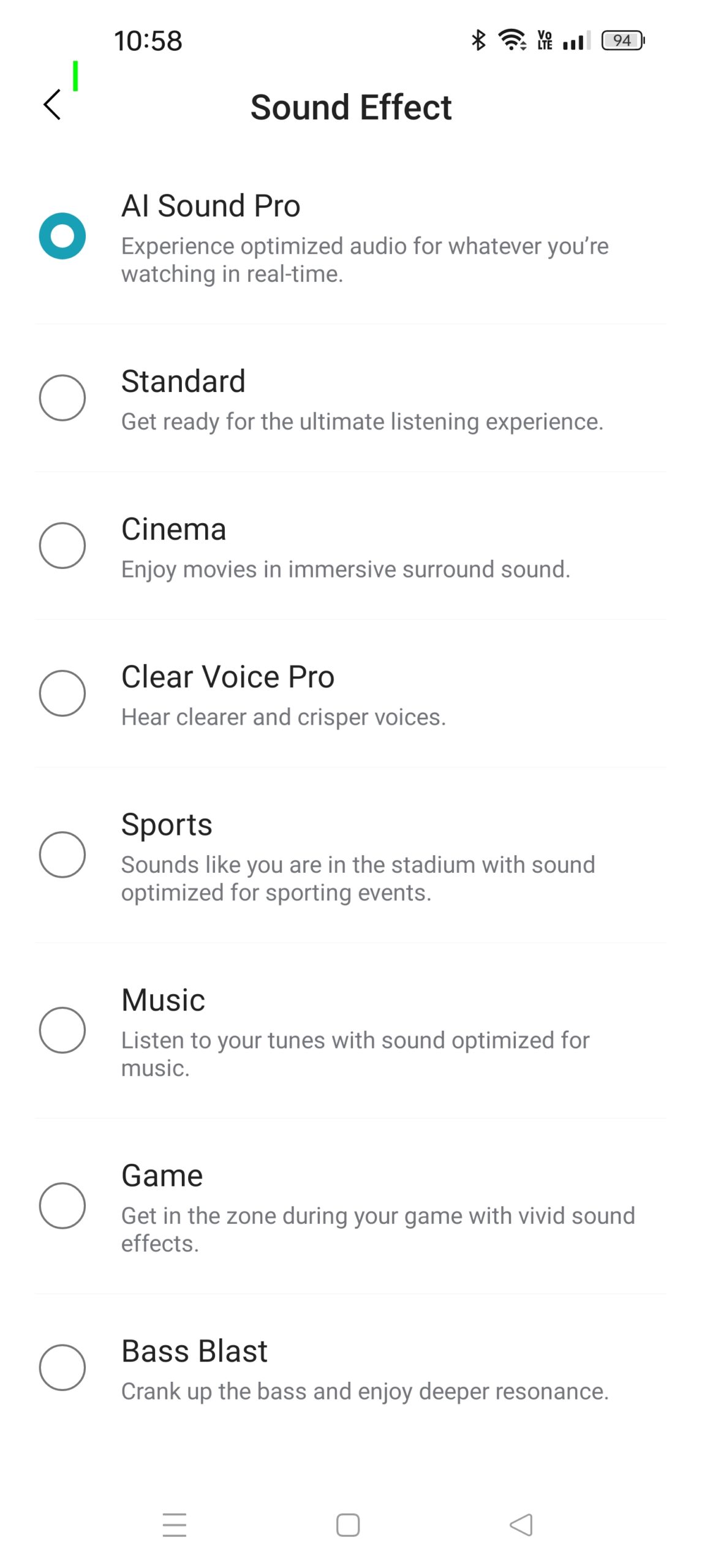 • SURROUND: Faux 3D sound regardless of the channels in the initially recorded content.