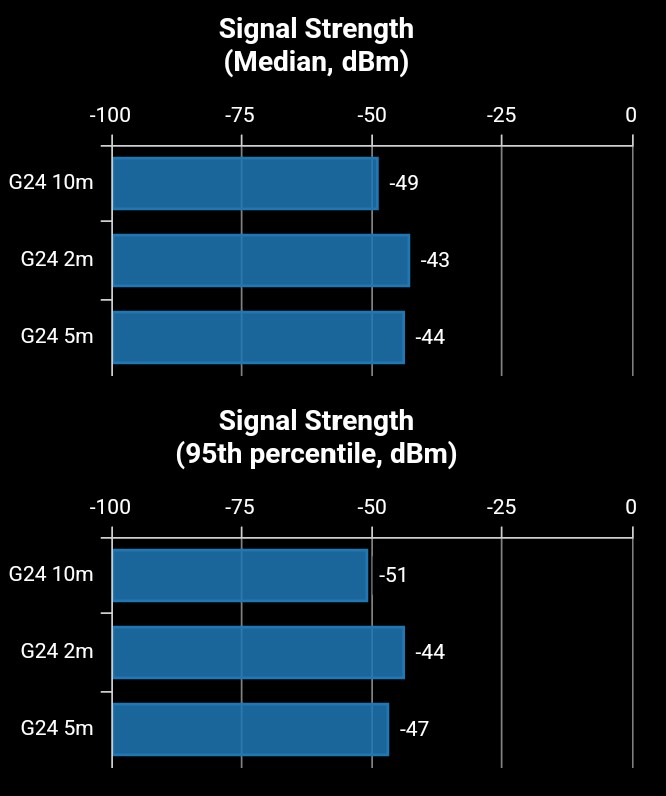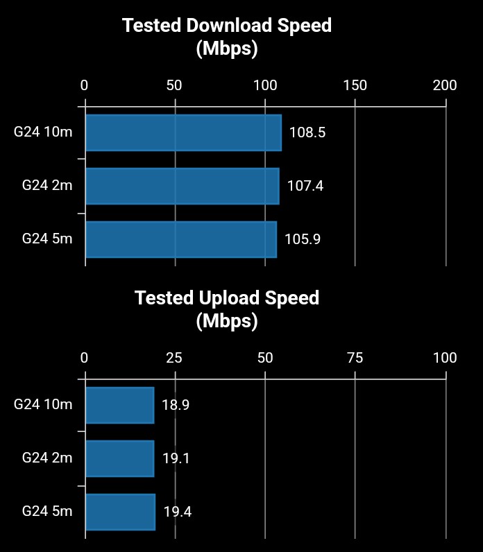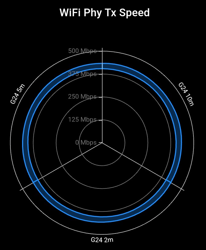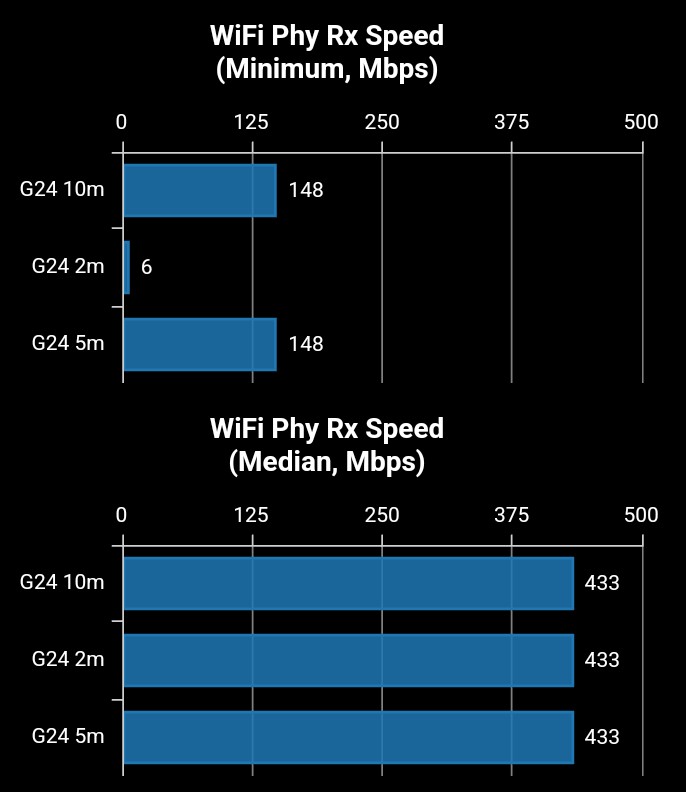 Where the g04 would only connect at 2.4GHz, this is fine on 5GHz as well. The signal strength is more stable, too, achieving 433Mbps (maximum) to past 10m from the router. We had no issues streaming 720p content or in file transfer.