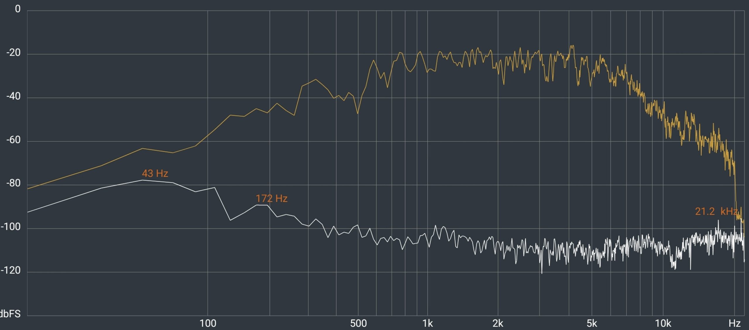 | Dog Whistle 10-20kHz | Steep decline to 17kHz |