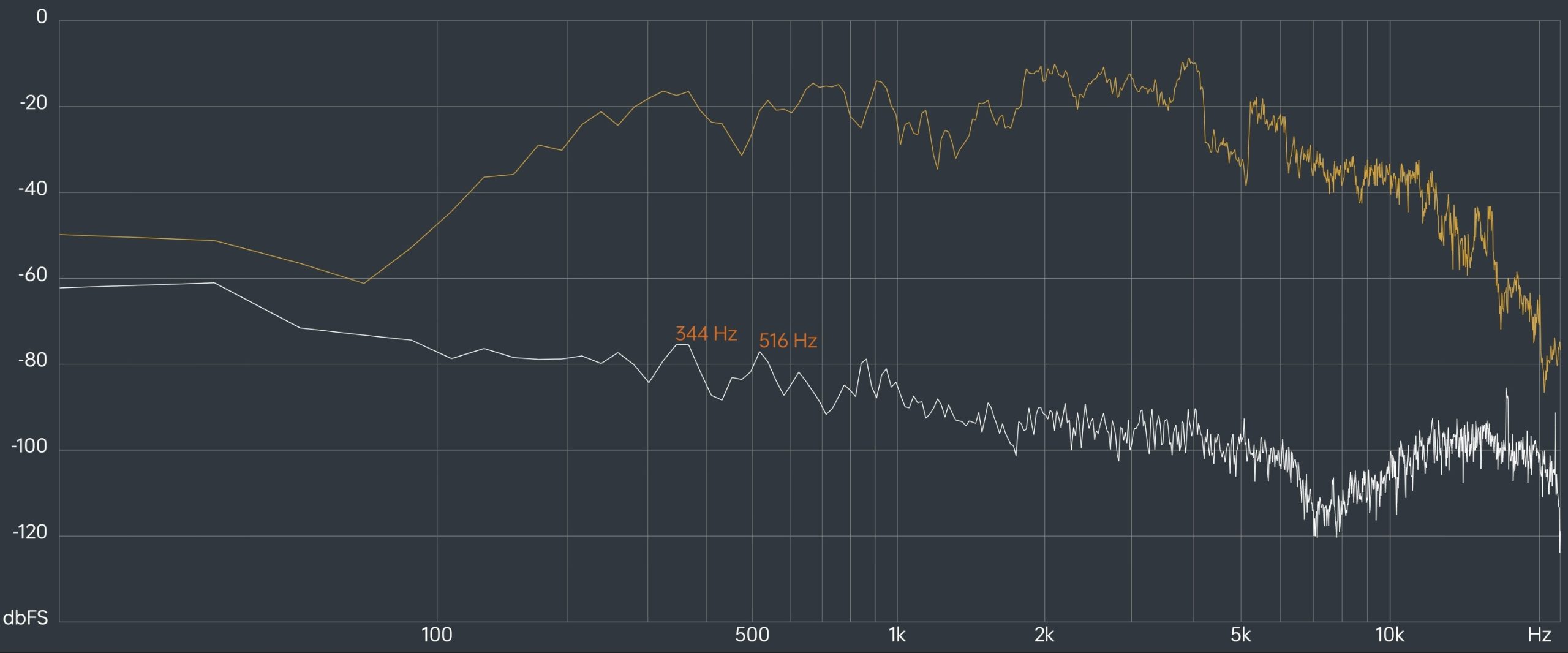 | Dog Whistle 10-20kHz | Steep decline to 20kHz |