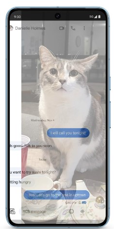 Transform your favourite photos into reactions with the help of on-device Google AI. Select the photo, review the object you’d like to react with and hit send. Your creations will be saved in a special tab for reuse.