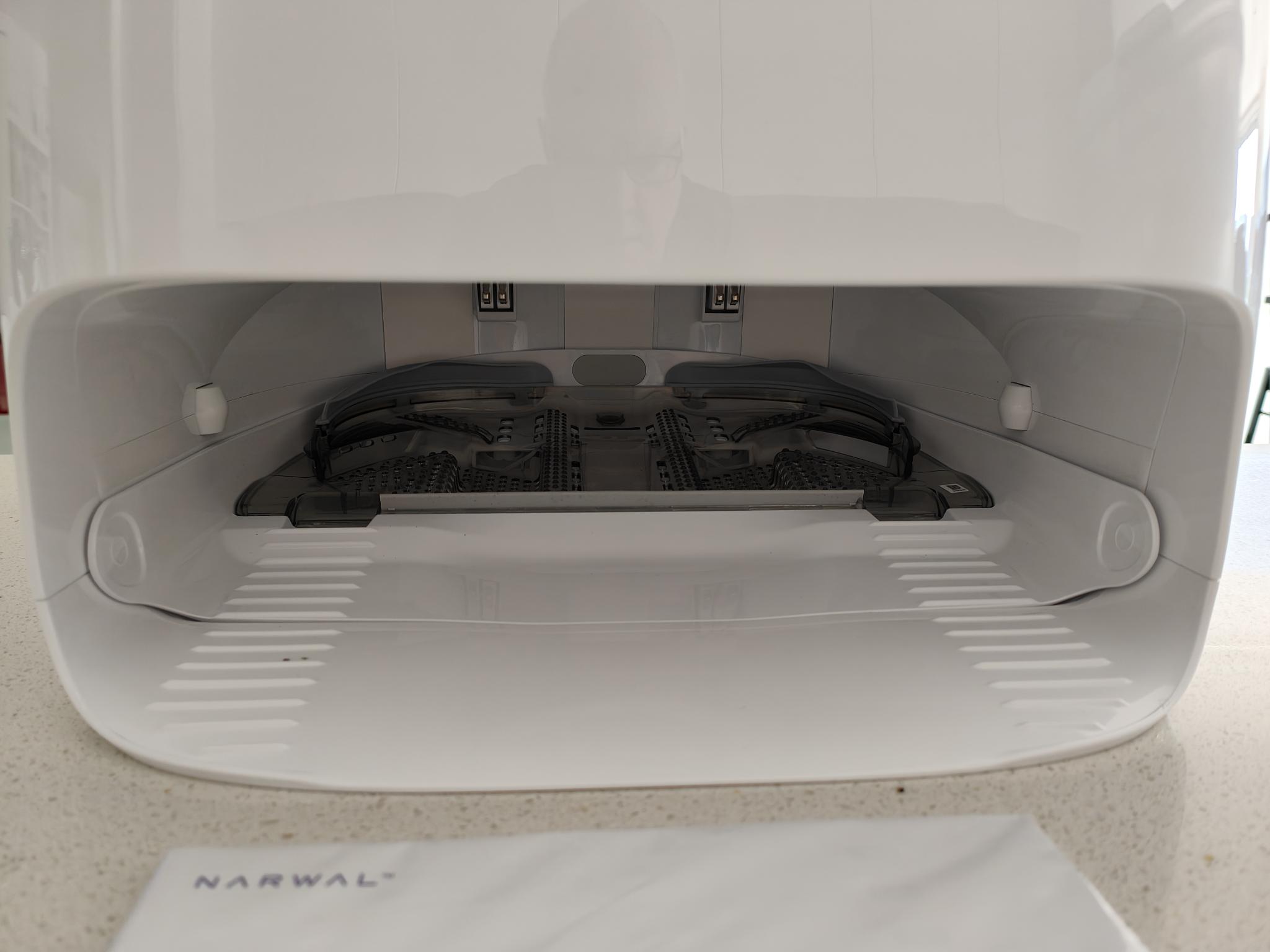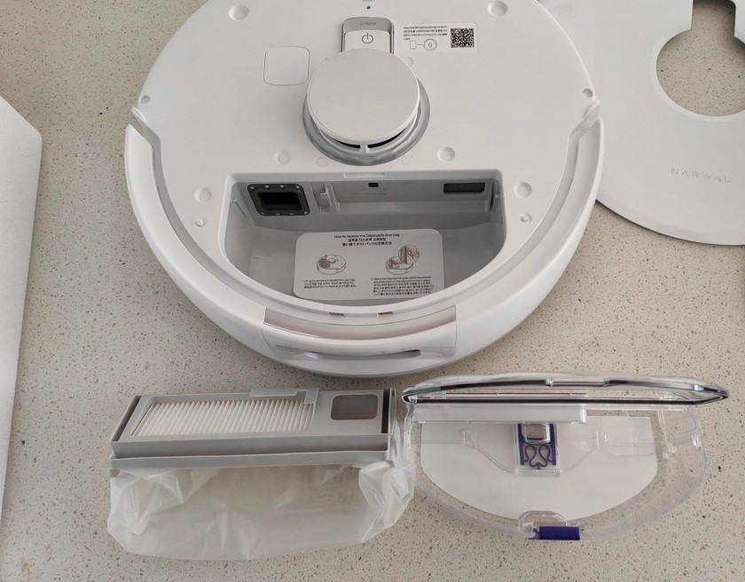 Where most Gen 4 cleaning stations empty the internal dustbin into a 3+L disposable paper bag, this does not. It has a standard 300+ml dust box and filter (empty/clean after every use) or a 1L disposable plastic bag and filter. Narwal claims the bag provides seven weeks of storage, but we found it necessary to empty it after every three to four uses.