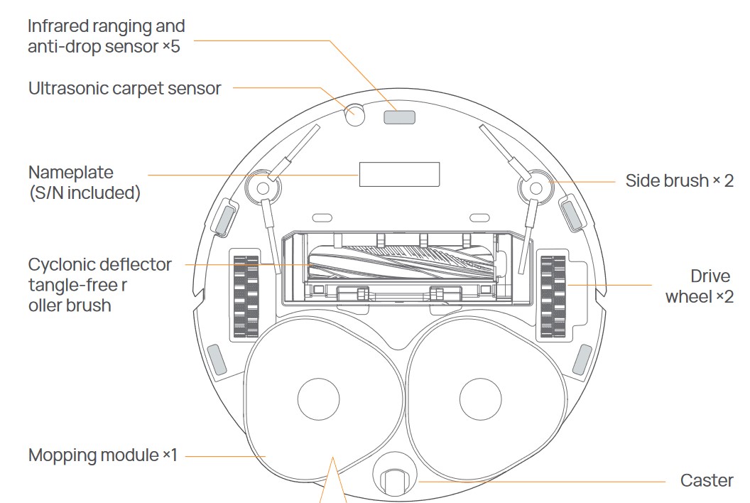 - LiDAR 360° with overhead detection sensor (for identifying under furniture)